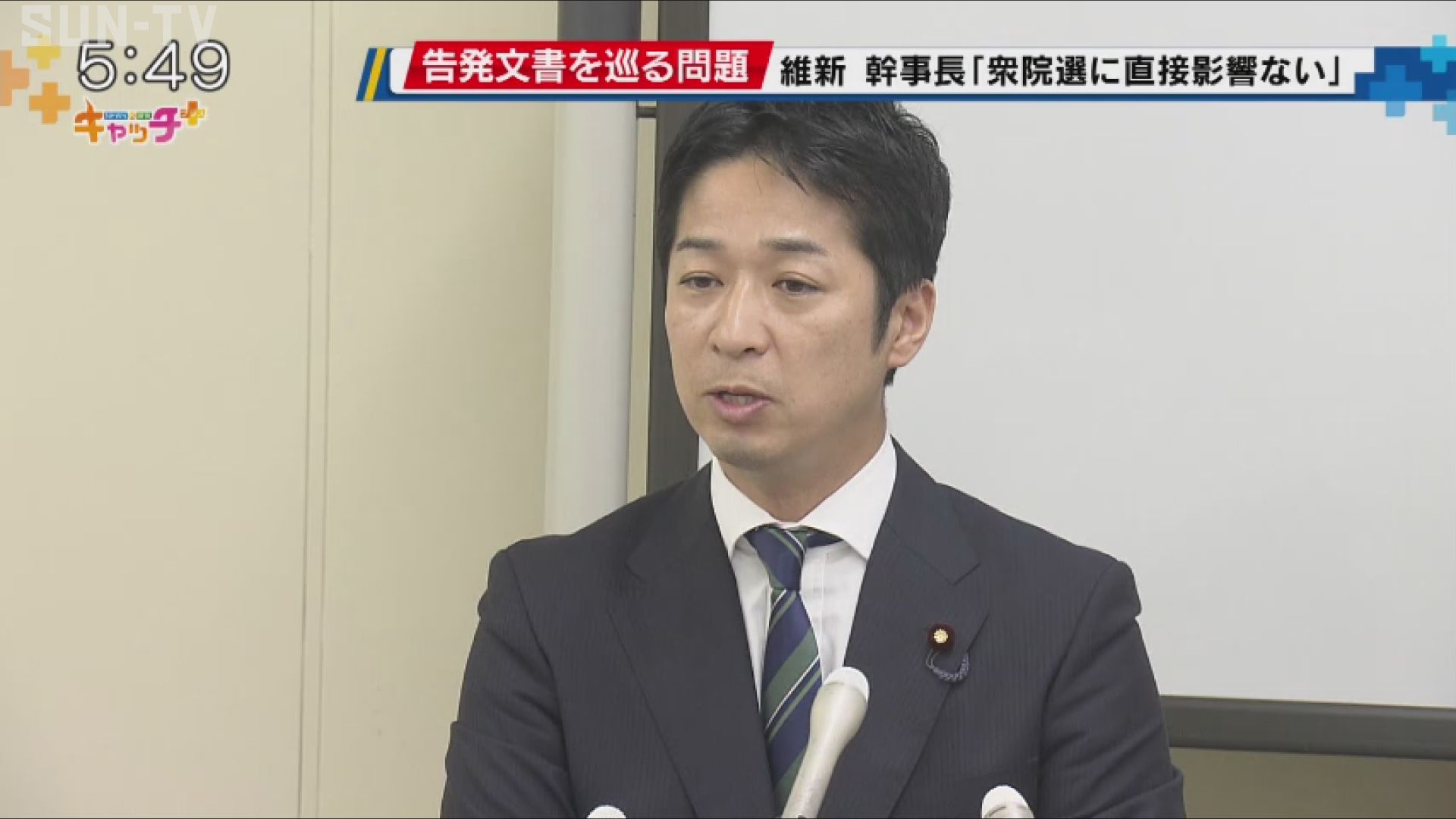 兵庫県の斎藤知事らを告発した文書を巡る問題で、日本維新の会の藤田文武幹事長は次期衆院選での維新への影響について「直接的にあるとは考えていない」などと述べました。