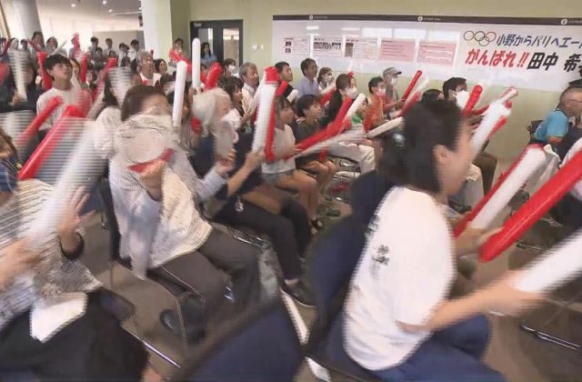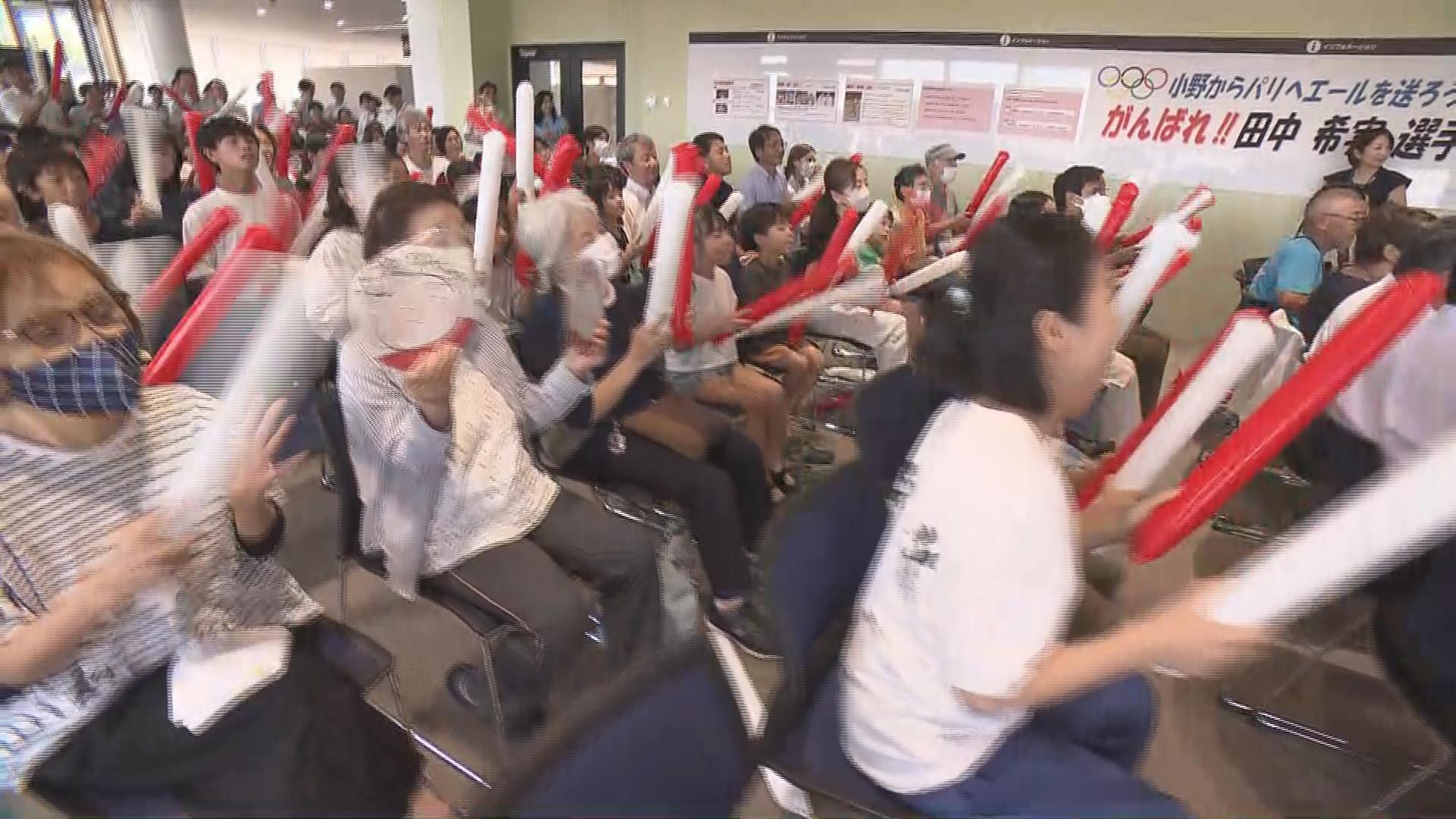 田中希実の出身地である兵庫県小野市の市役所には、パブリックビューイングの会場が設置され、市民や職員が集まり、パリに声援を送りました。