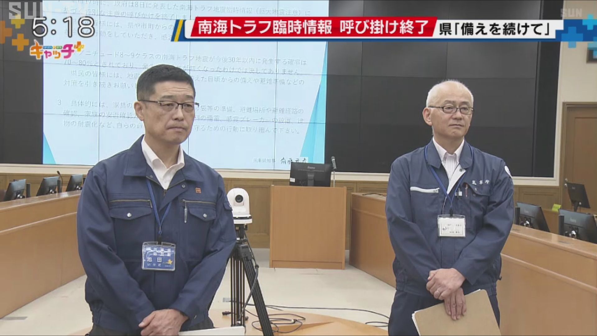 南海トラフ地震の臨時情報「巨大地震注意」の呼び掛けが終了したことを受けて、兵庫県は災害対策連絡会議を開き、「引き続き日頃からの備えを続けてほしい」と求めました。