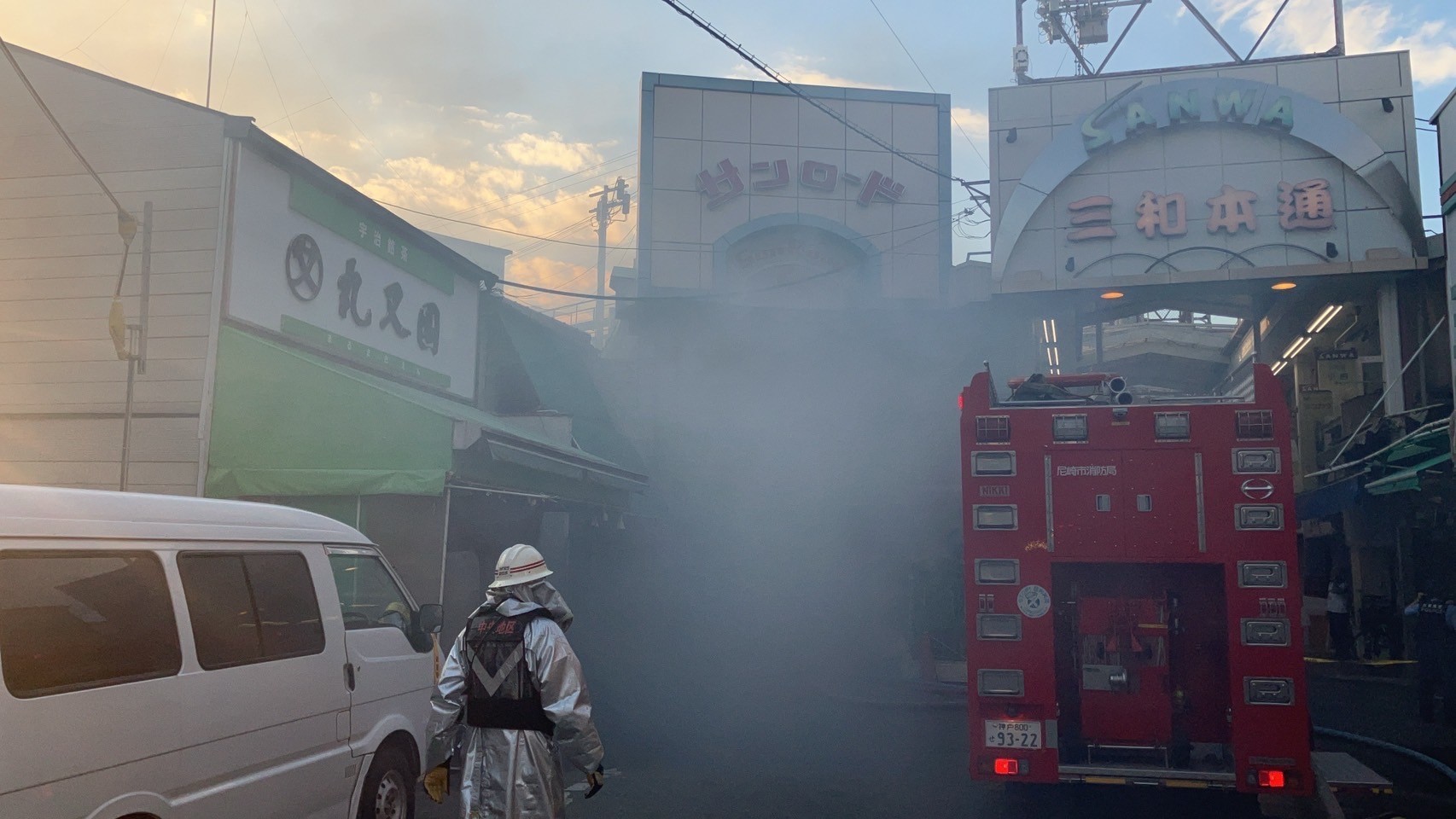 17日午後4時半過ぎ、尼崎市玄番北之町にある商店街「サンロード」で、「店舗から煙が出ているのと爆発音がしました」と近くに住む人から消防に通報がありました。