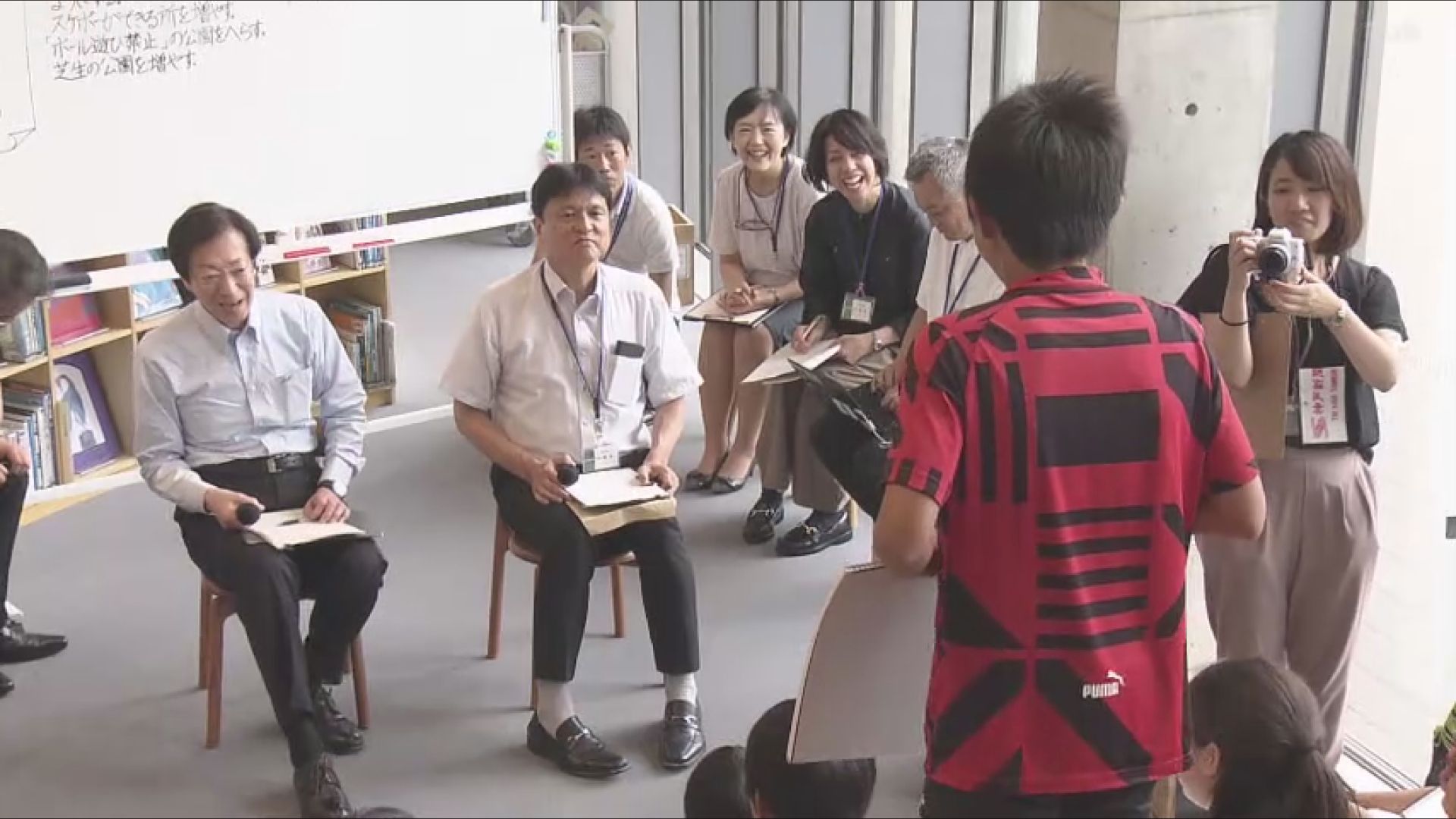 子どもたちの鋭い意見を受けて久元市長は、笑顔を交えながら実現できるかできないかを真剣に答えていました。