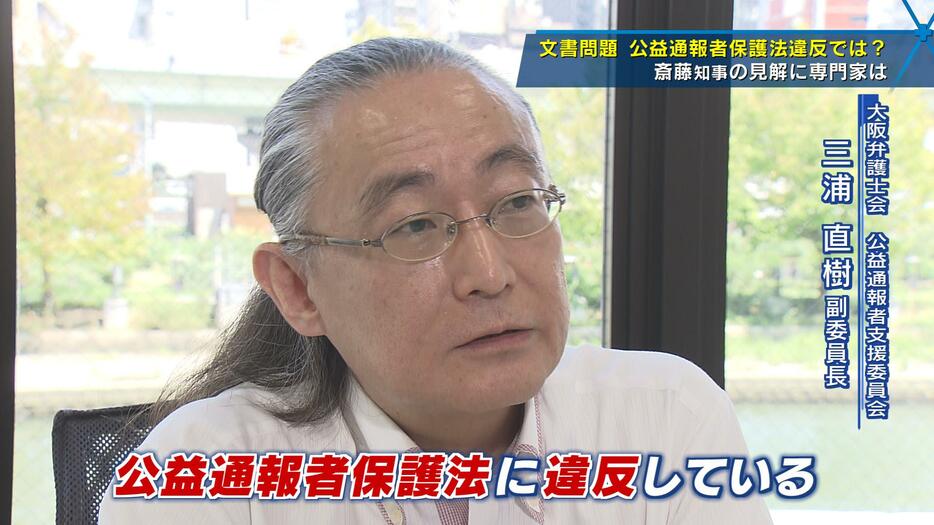 斎藤知事の認識や兵庫県の対応に異を唱える弁護士がいます。大阪弁護士会の公益通報者支援委員会の副委員長 三浦直樹弁護士です。