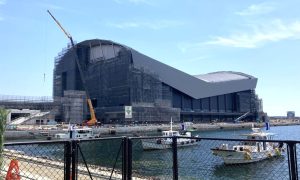 来年2月の竣工、4月の開業へ向けて建設が進んでいる。