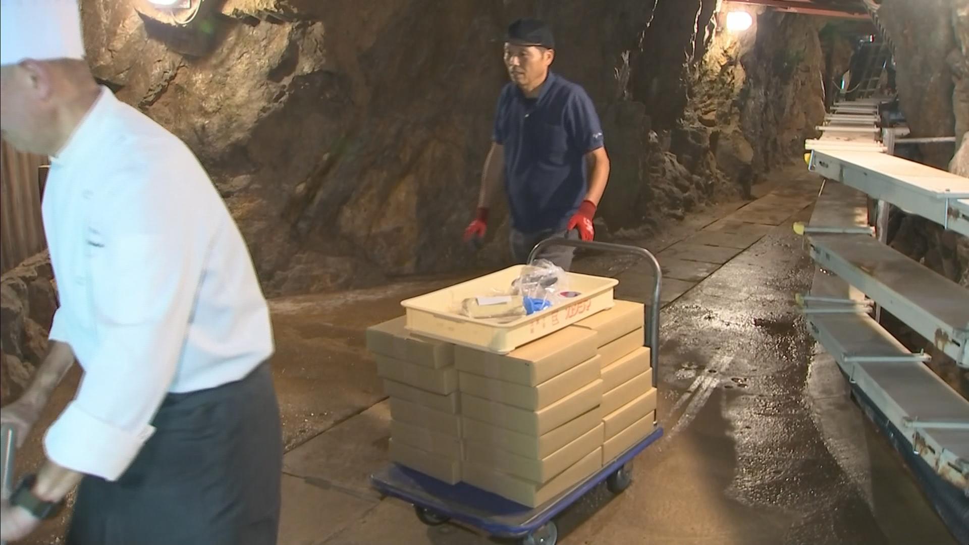 この日は、トラックで運び込まれた1500本のシュトーレンが坑道にある貯蔵庫に運び込まれました。
