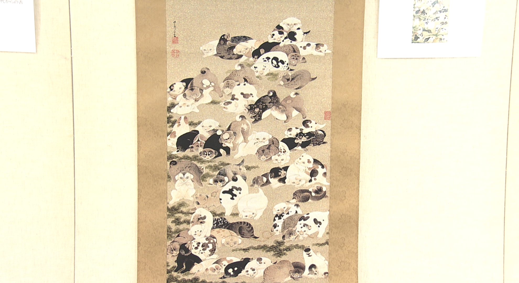 神戸市灘区の原田の森ギャラリーで開かれている企画展では、江戸時代中期に活躍した伊藤若冲の作品を西陣織の掛け軸や装飾で再現したおよそ50点が紹介されています。