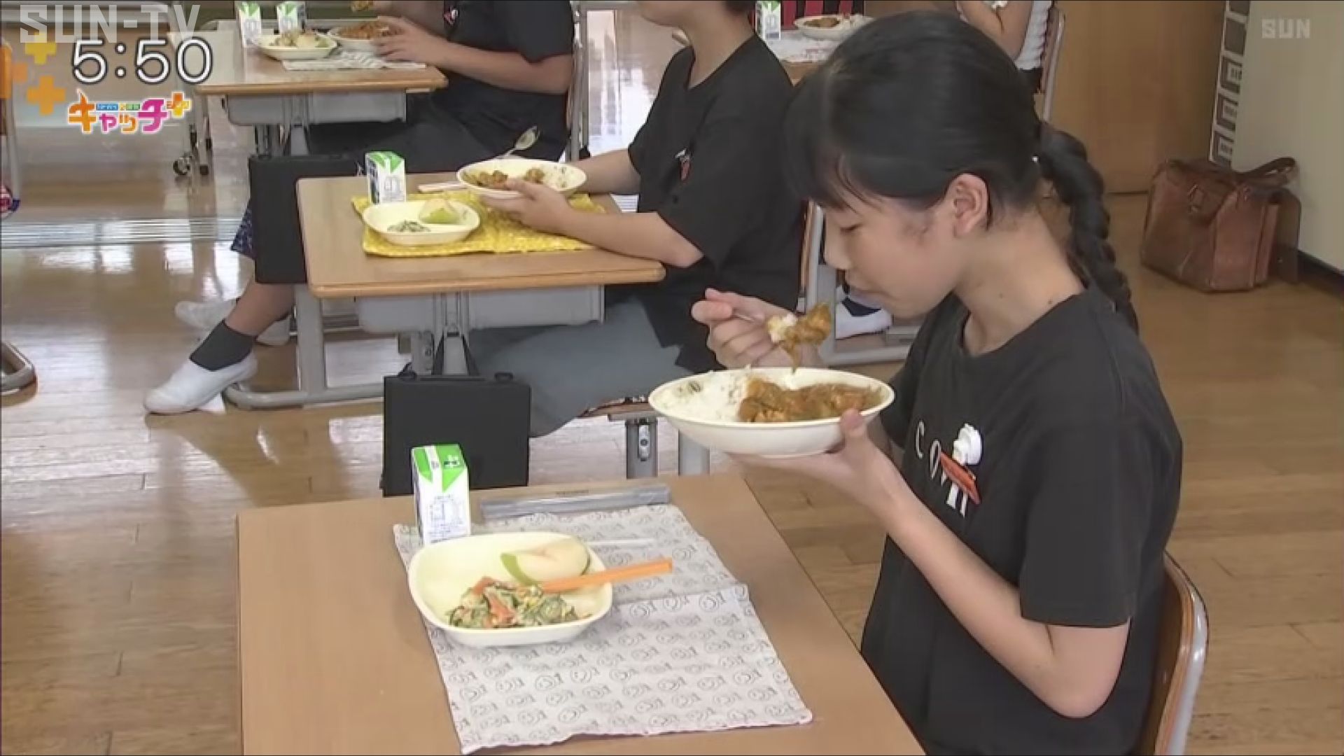 この日の給食には、農業高校で生産した鶏肉と野菜を使った「但農カレー」やオクラの和え物などが提供され、児童たちはおいしそうに地元の食材を堪能していました。