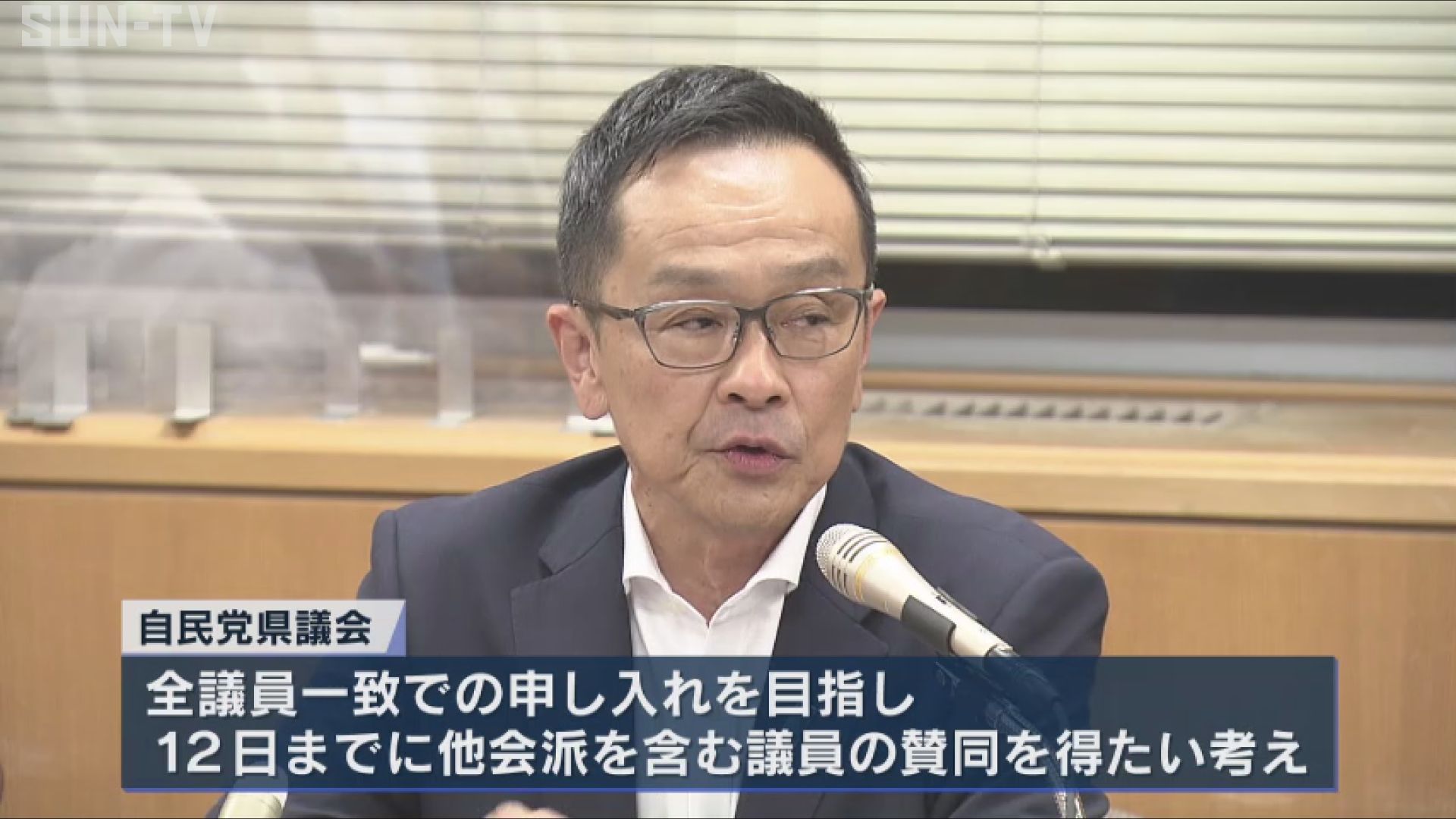 自民党は全議員一致での申し入れを目指すとして、9月12日までに、維新や公明など、他会派も含めた議員の賛同を得たいとしています。