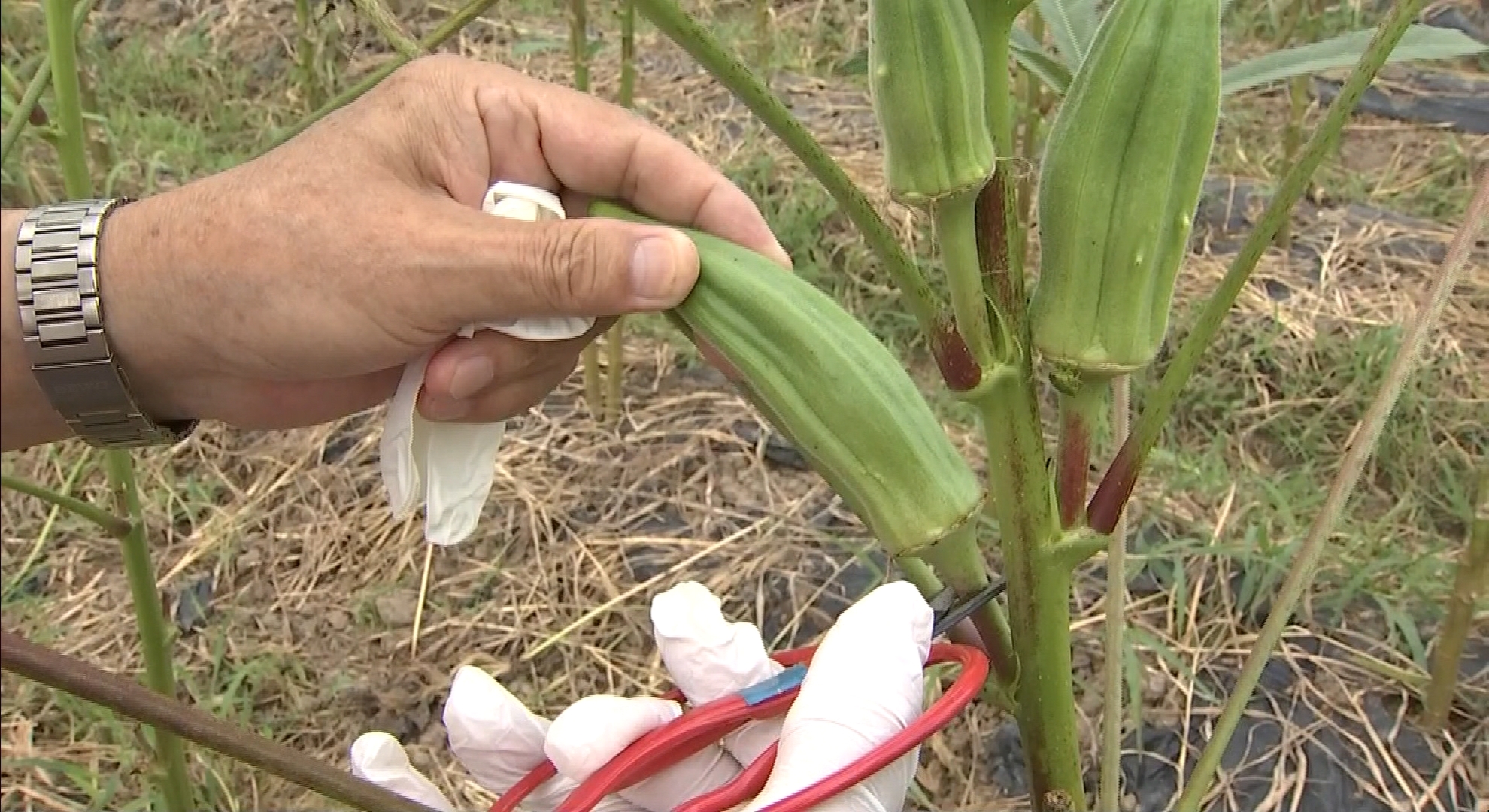 地域の食材の魅力を広めようと、兵庫県豊岡市では、観光客を対象に伝統野菜「八代オクラ」の収穫体験が行われました。