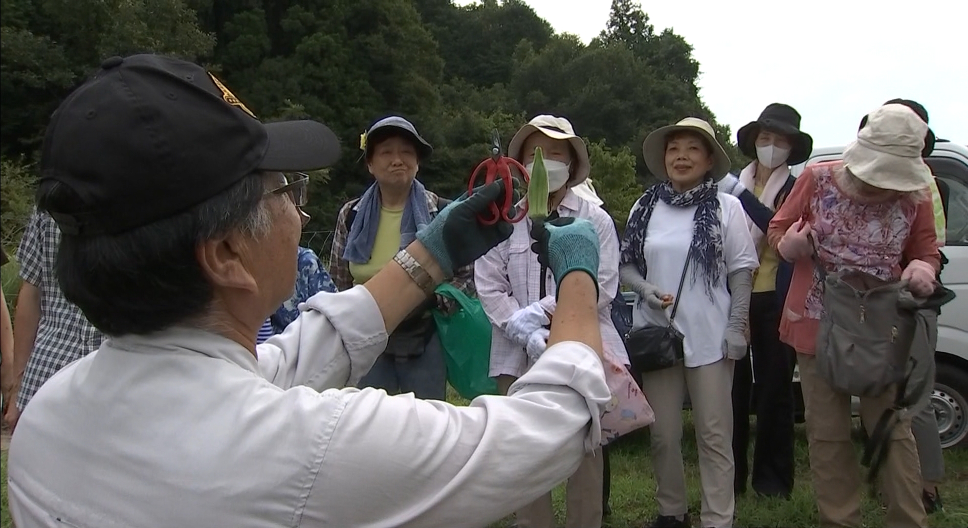 8日は、京阪神から参加した20人が豊岡市日高町を訪れ、この地域の伝統野菜「八代オクラ」の収穫を体験しました。