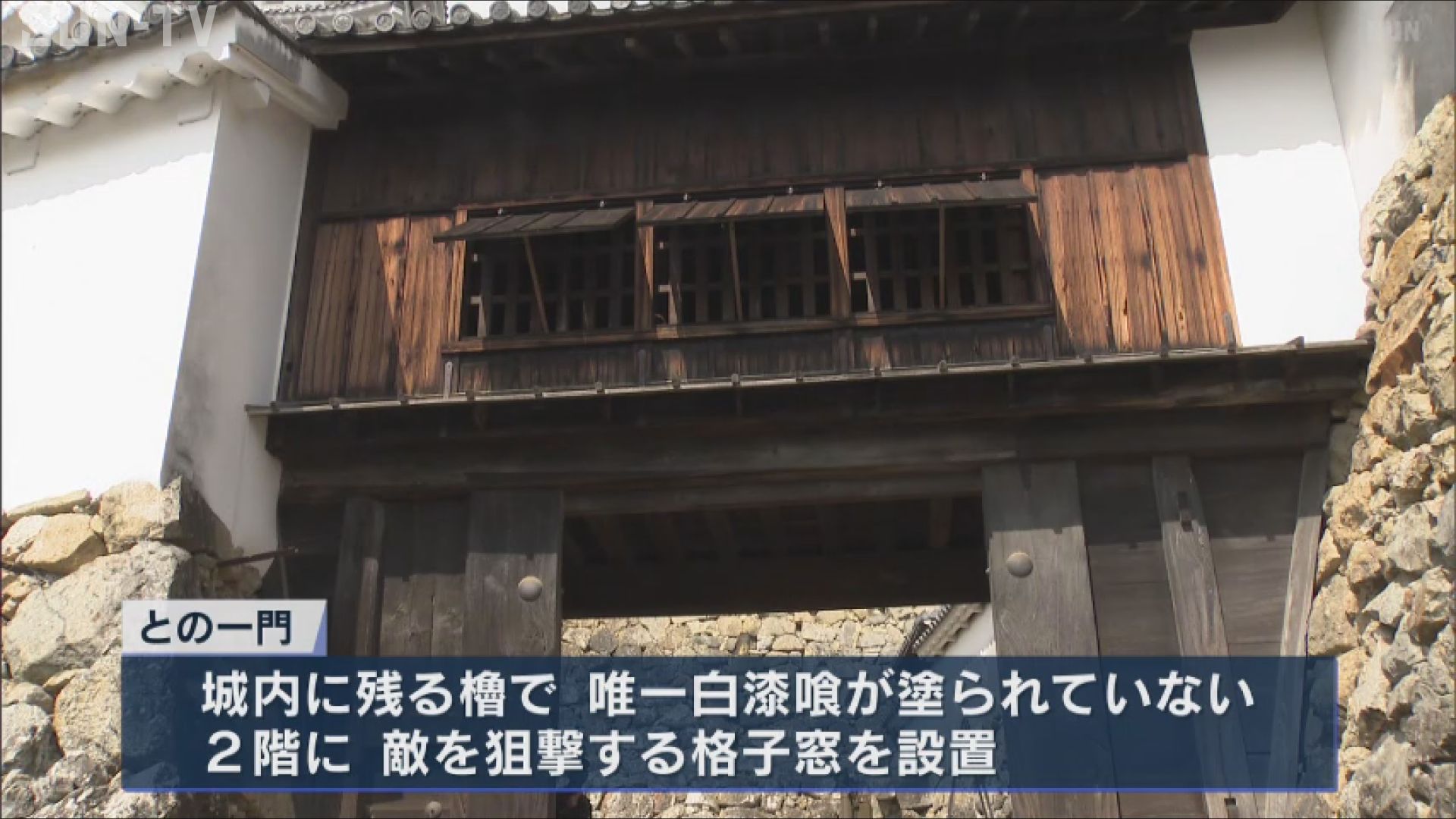 現存する三つの門のうち、大天守の北東に位置する「との一門」は、城内に残る櫓で、唯一白漆喰を塗っていません。