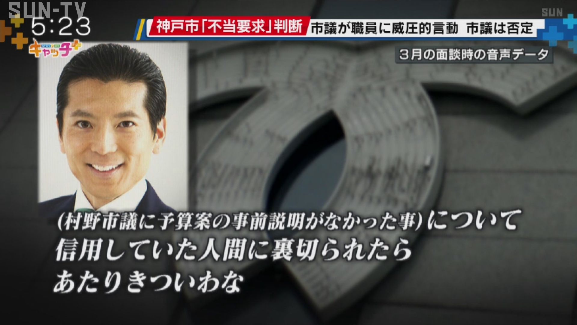神戸市会の村野誠一議員が市職員に威圧的な言動などで要望を繰り返したとして、市が条例に基づく不当要求と判断していたことが分かりました。