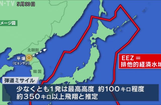 北朝鮮が弾道ミサイル発射 EEZ外に落下か 被害情報なし