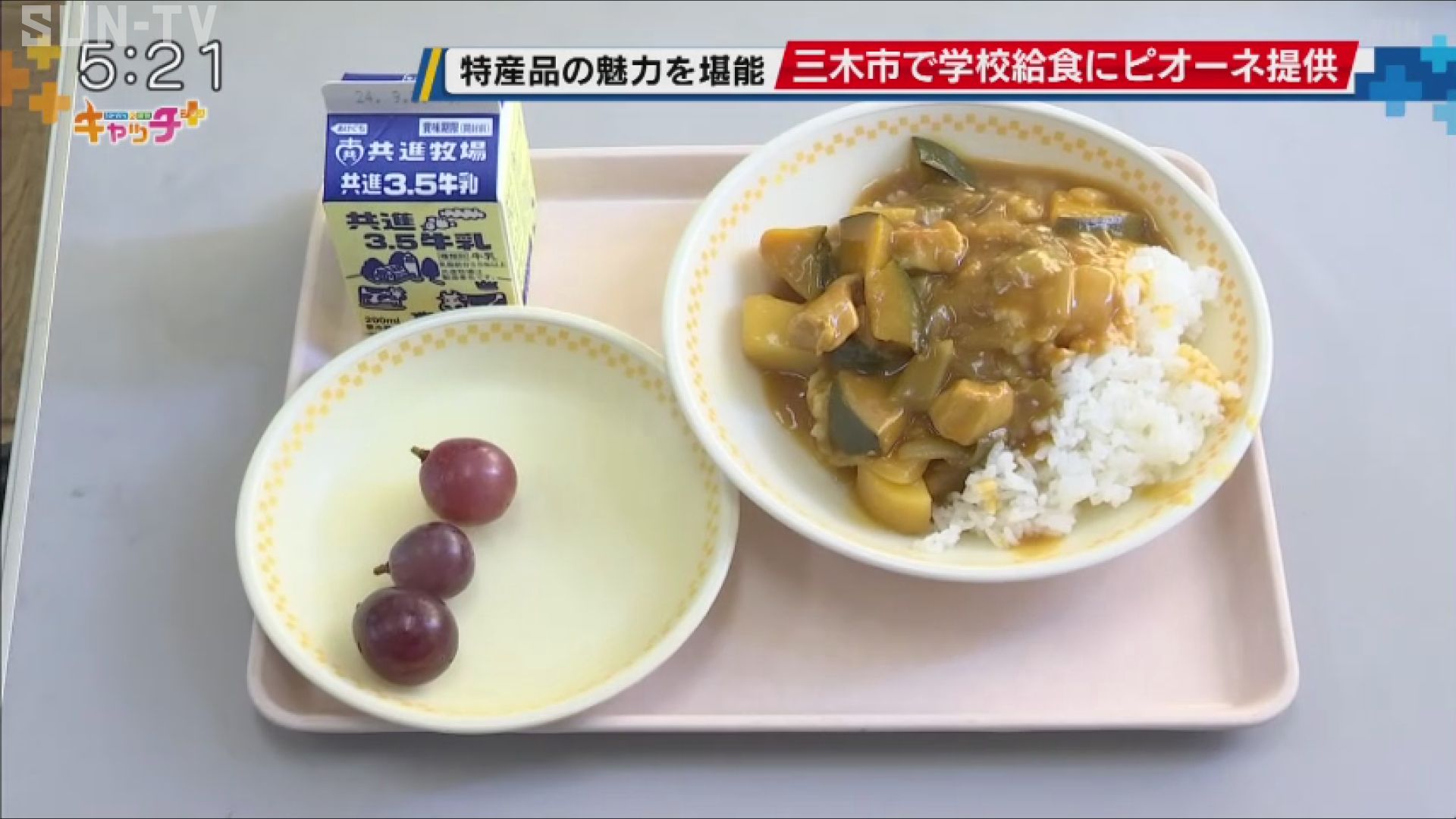 このうち三木市立広野小学校では12日の給食で、地元で収穫されたブドウ「ピオーネ」が、およそ330人の児童に提供されました。