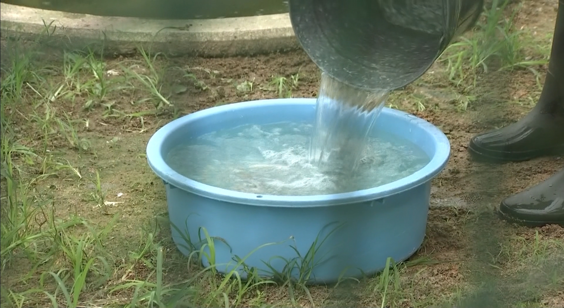 その後、実際に飼育ケージの中に入って、コウノトリを刺激しないようバケツに餌と水を入れるなど、静かに餌やりを体験していました。