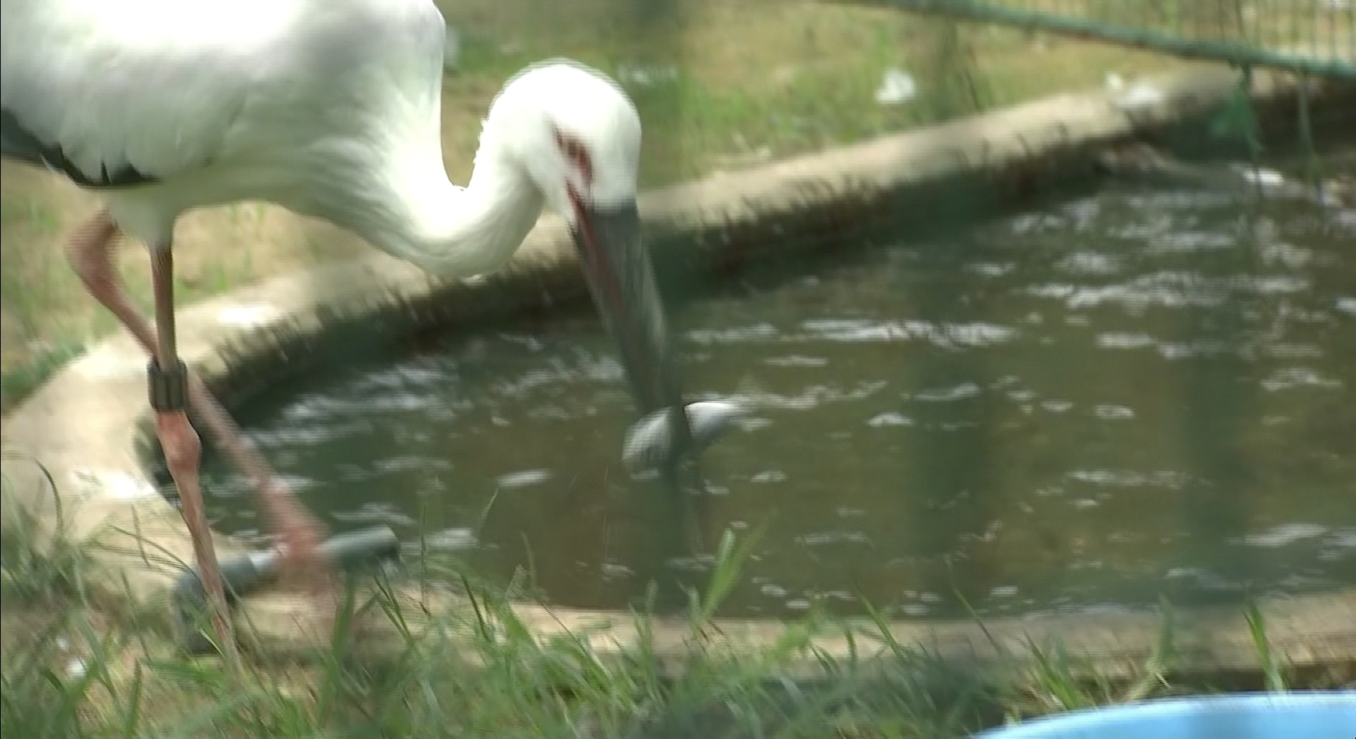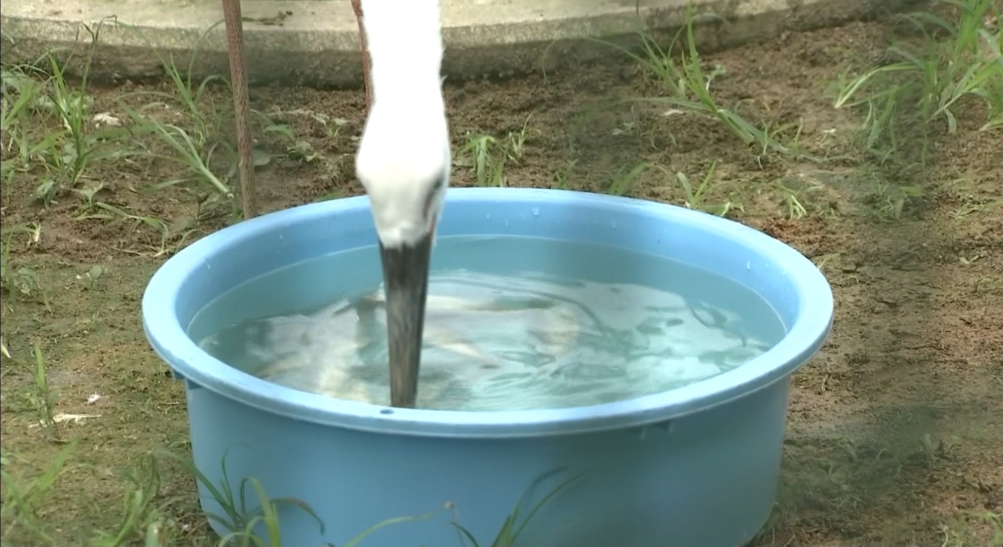 参加者は、公園の職員からコウノトリの生態や、普段食べている餌の種類、餌をあげる時の注意点などについて説明を受けた他、普段は公開されていない飼育エリアで栄養が偏らないよう餌のアジにビタミン剤を入れる作業に挑戦しました。