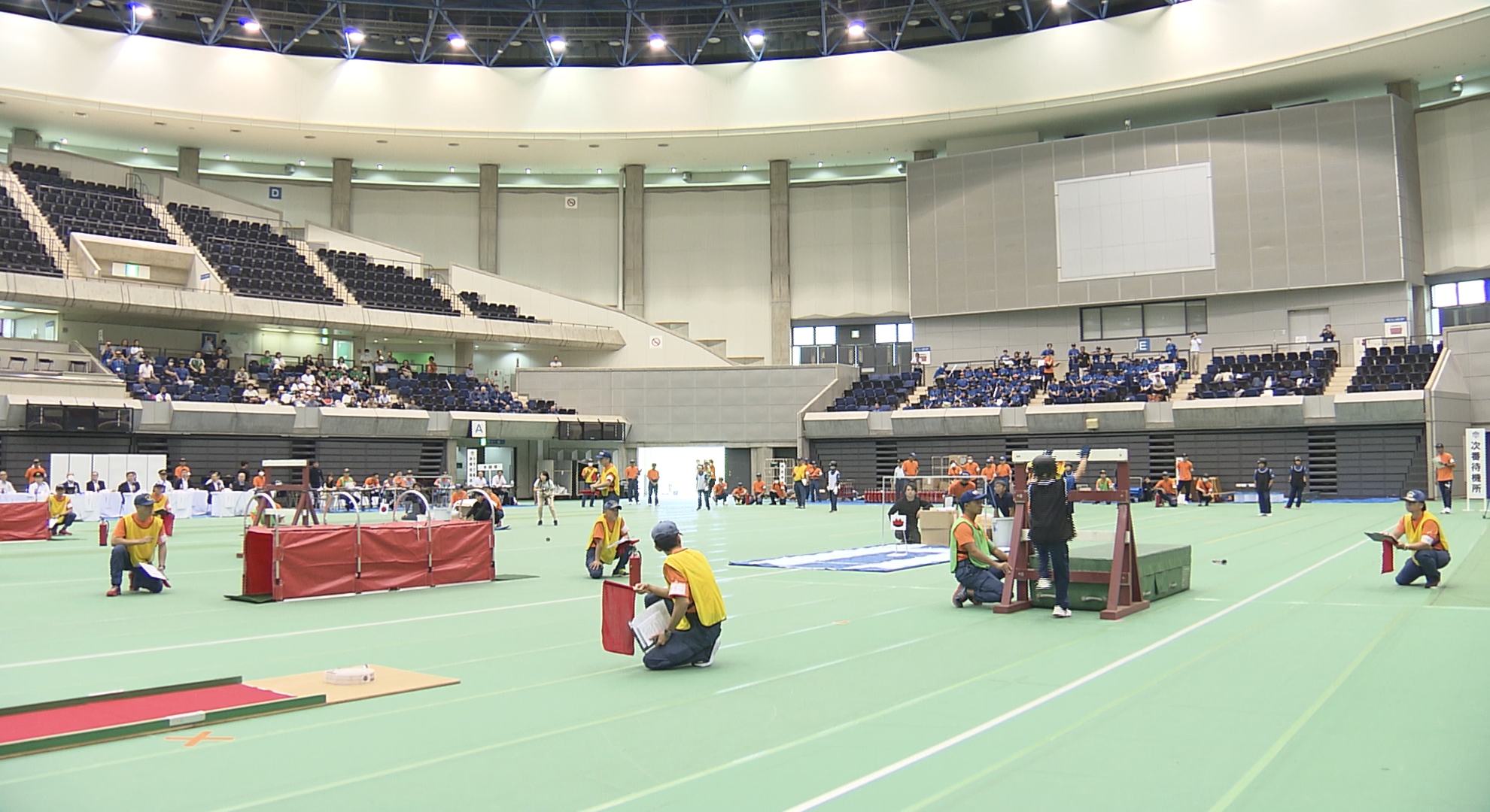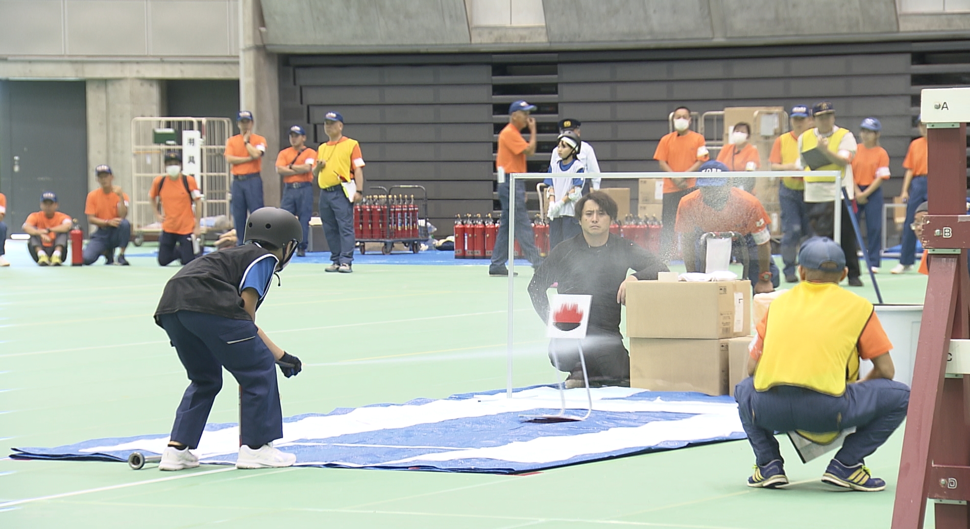 大会は2024年に震災30年を迎える神戸市で開かれ「クラブ対抗リレー」では放水ホースの筒先をバトンとして様々な障害物をクリアする速さを競いました。
