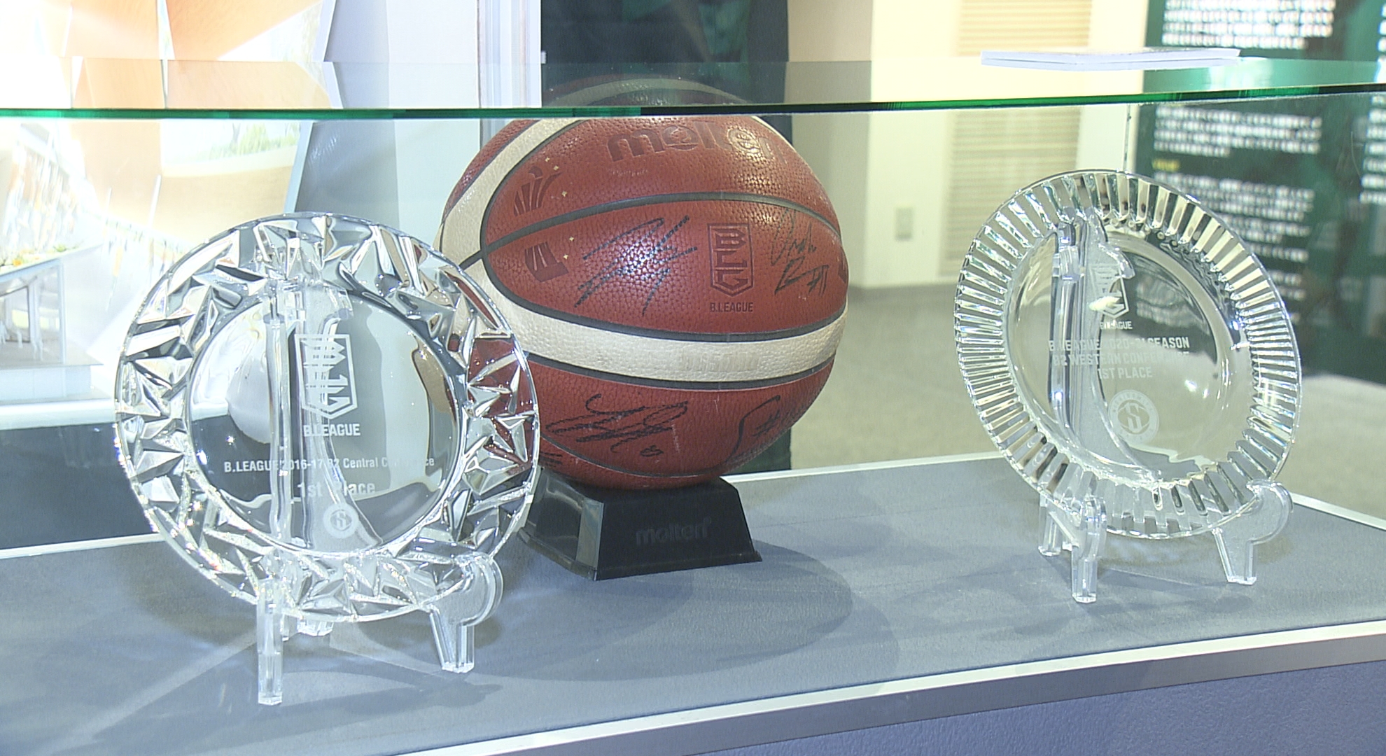 神戸ストークスのコーナーでは、2021年にB2西地区で優勝した時の記念プレートや、これまでのユニフォームを間近で見ることができる他、アリーナに導入される座席シートに実際に座る体験もできます。