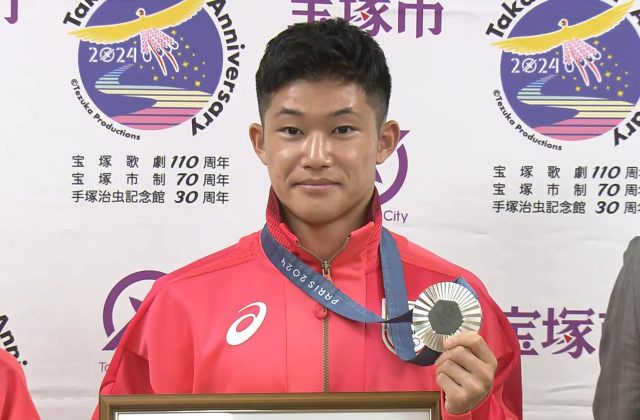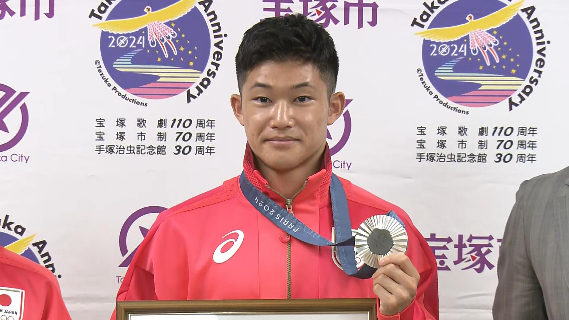 パリオリンピック高飛び込みで銀メダルを獲得した玉井陸斗選手に、地元の兵庫県宝塚市から宝塚市特別賞が贈られました。