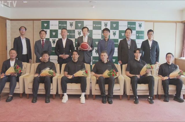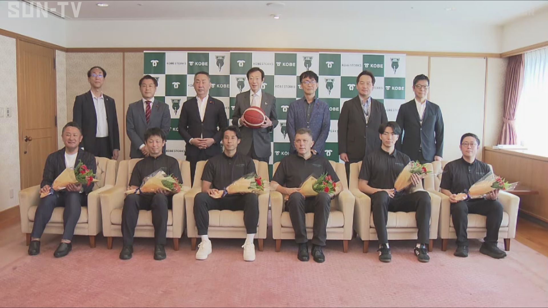 プロバスケットボールBリーグ2部の神戸ストークスの選手らが神戸市役所を訪れ、今シーズンの活躍を誓いました。