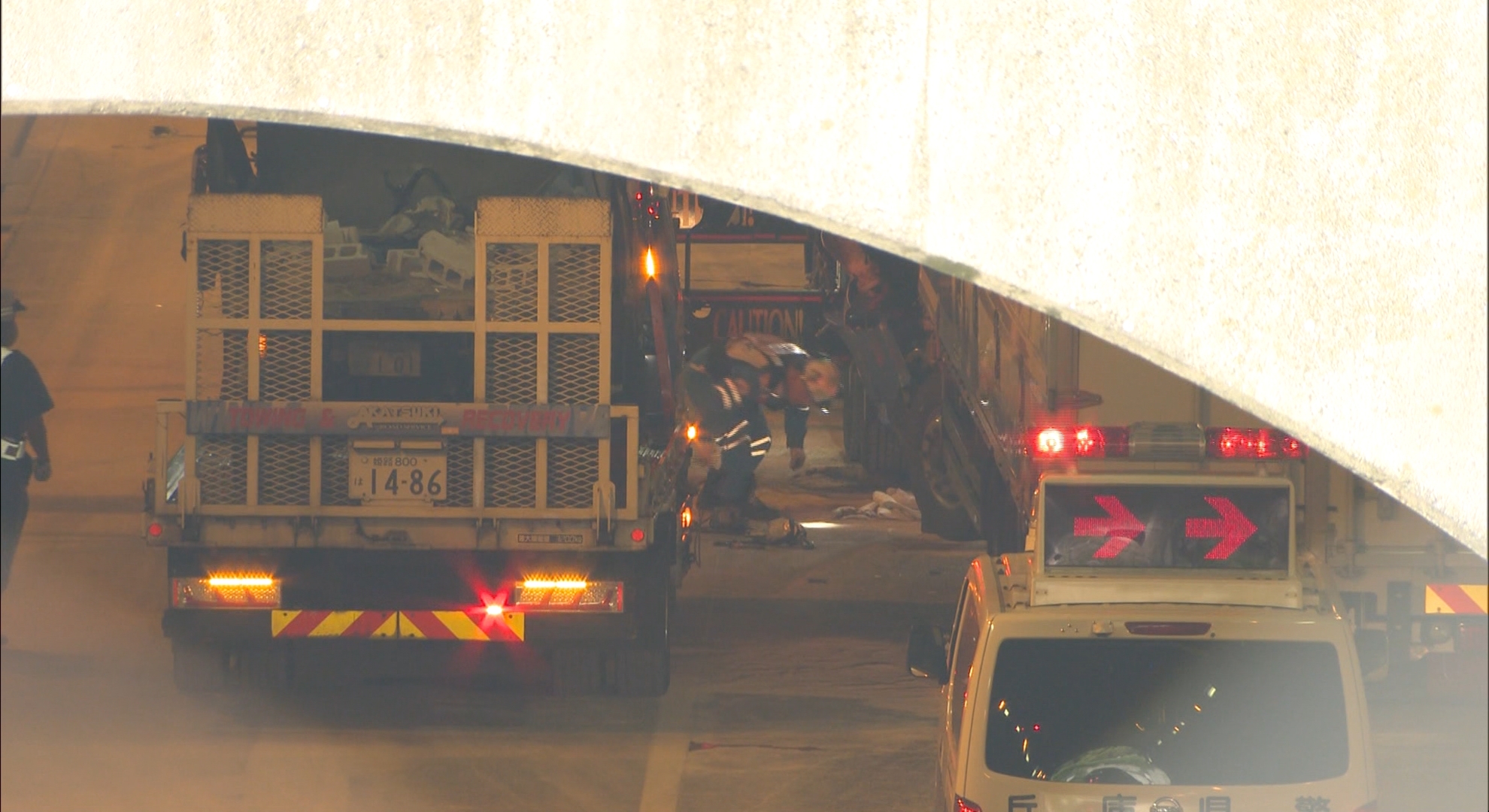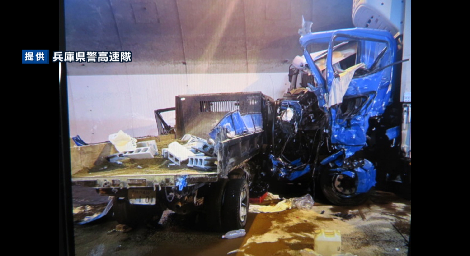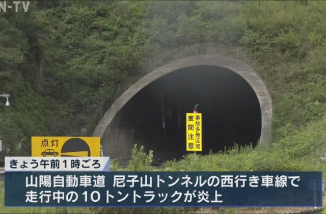 10月2日午前、山陽自動車道下りのトンネル入り口付近で、トラック同士が衝突する事故があり、1人が死亡、2人が軽傷を負いました。
