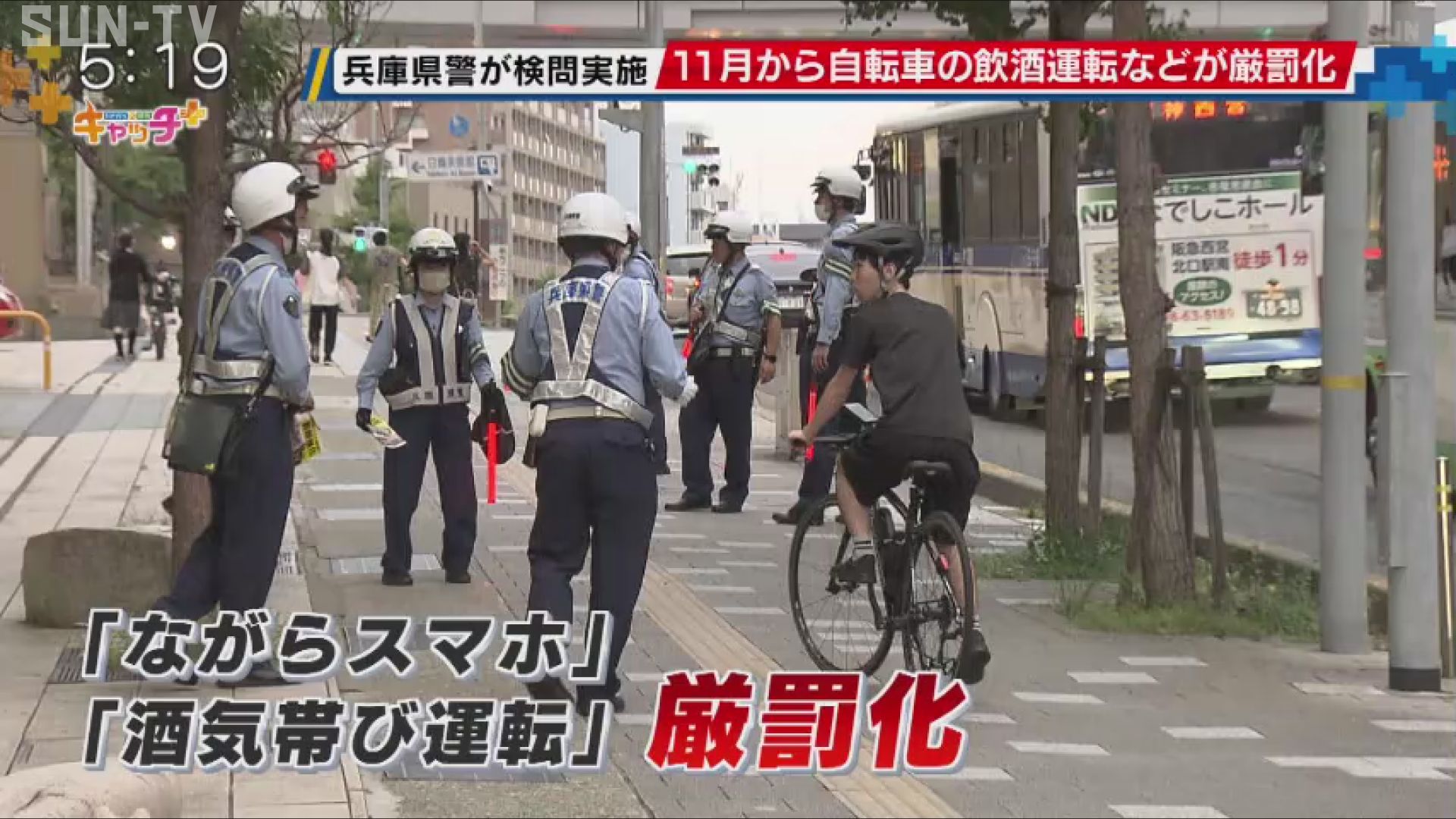 11月から自転車の交通違反の罰則が強化されるのを前に、兵庫県警がきのう自転車の飲酒検問を行いました。