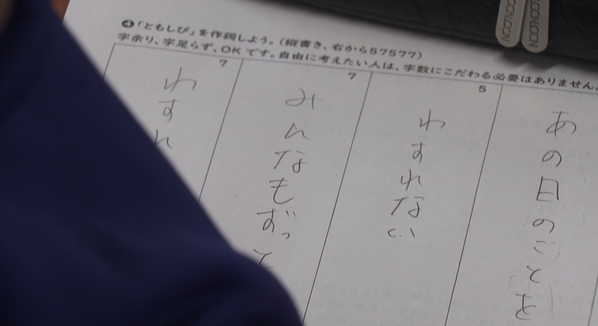 石田さんから「中学生の目線を大事にして同世代に共感されるような歌詞を心掛けてほしい」というアドバイスを受け、言葉を丁寧に紡いでいました。