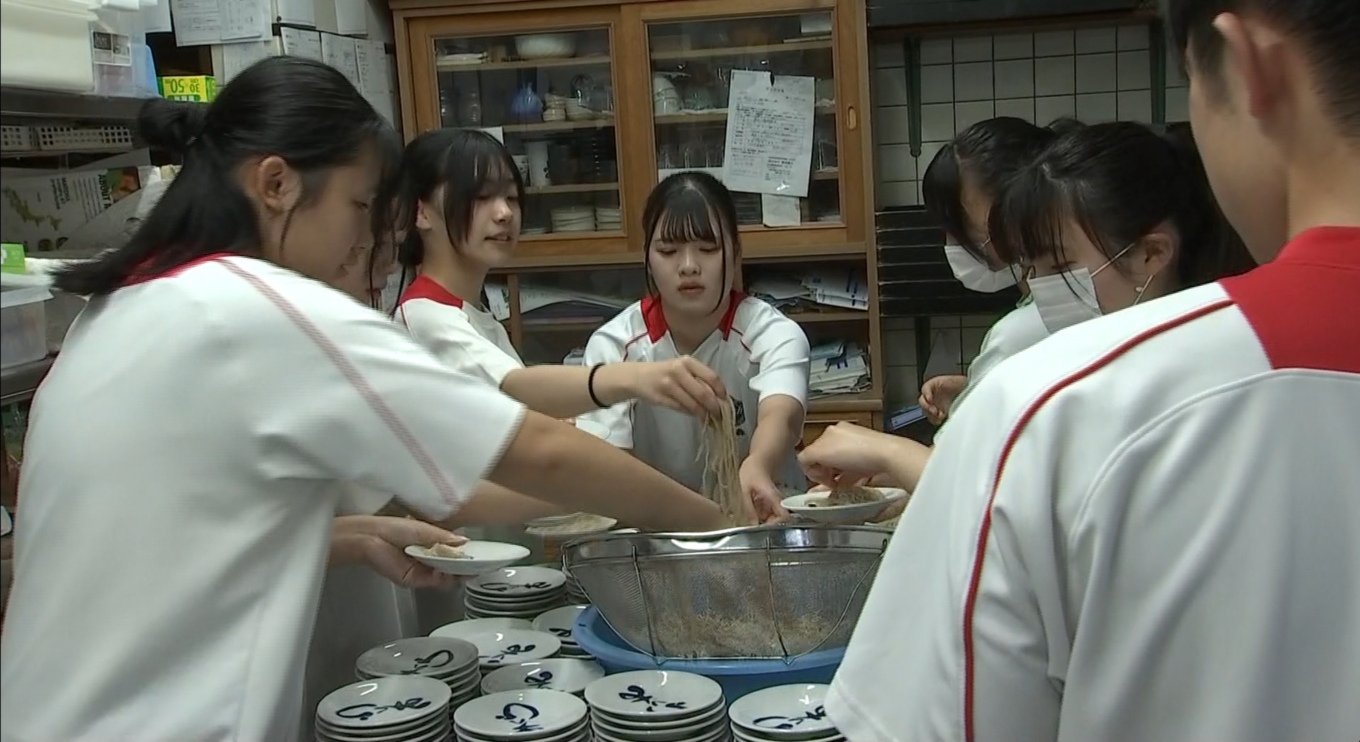 生徒たちは自ら打ったそばを湯がき、地元が誇る特産品の味を確かめていました。