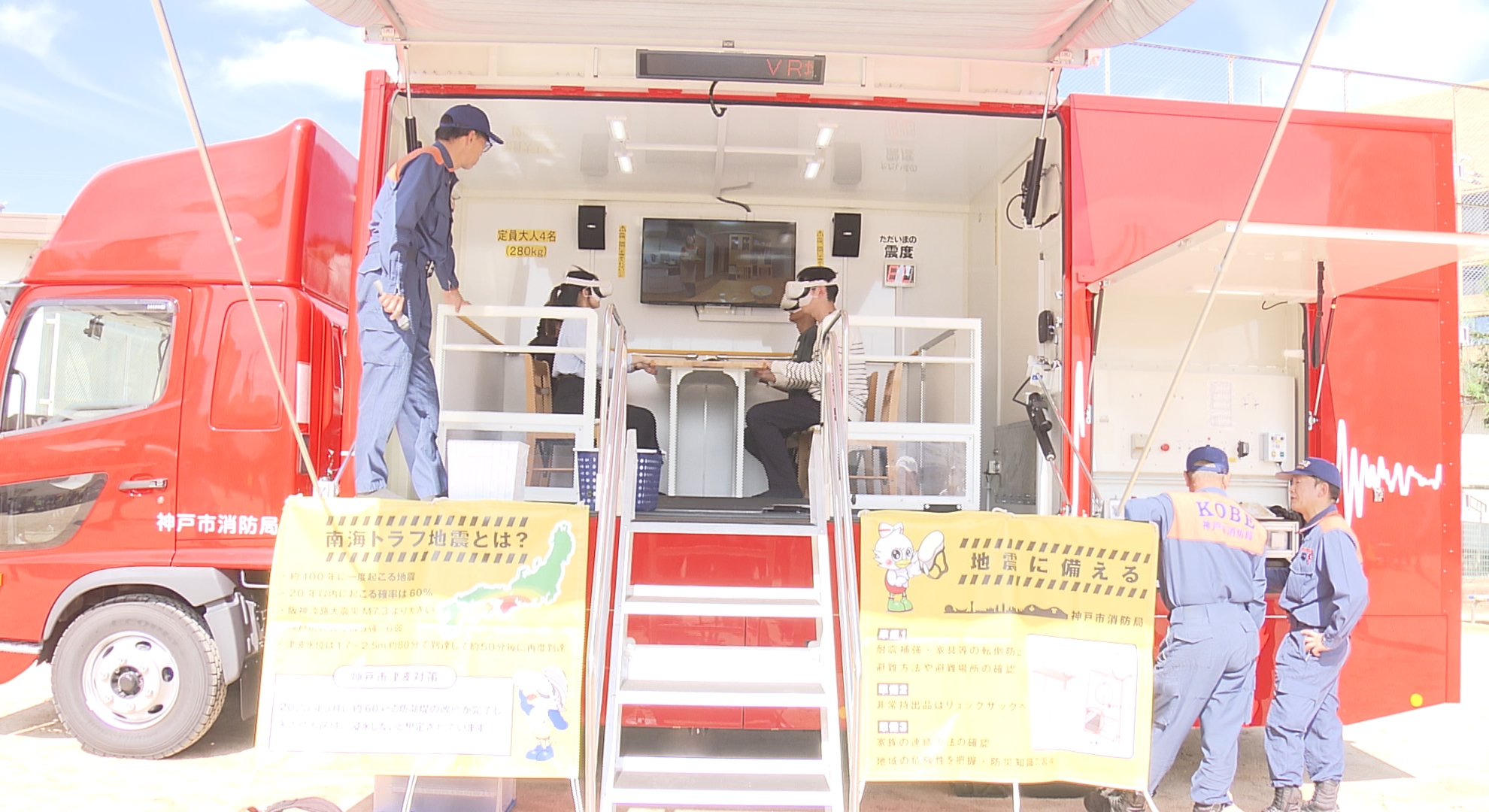 神戸市消防局はVR=バーチャルリアリティーの技術を取り入れた新しい「地震体験車」を導入し、10月6日に市民にお披露目しました。