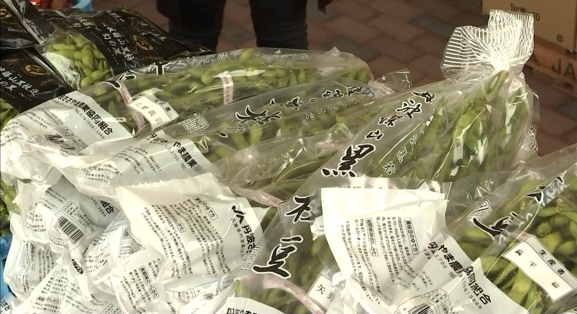 丹波地域の秋の味覚を代表する黒枝豆の販売が10月7日に解禁となり、兵庫県丹波篠山市でセレモニーが開かれました。