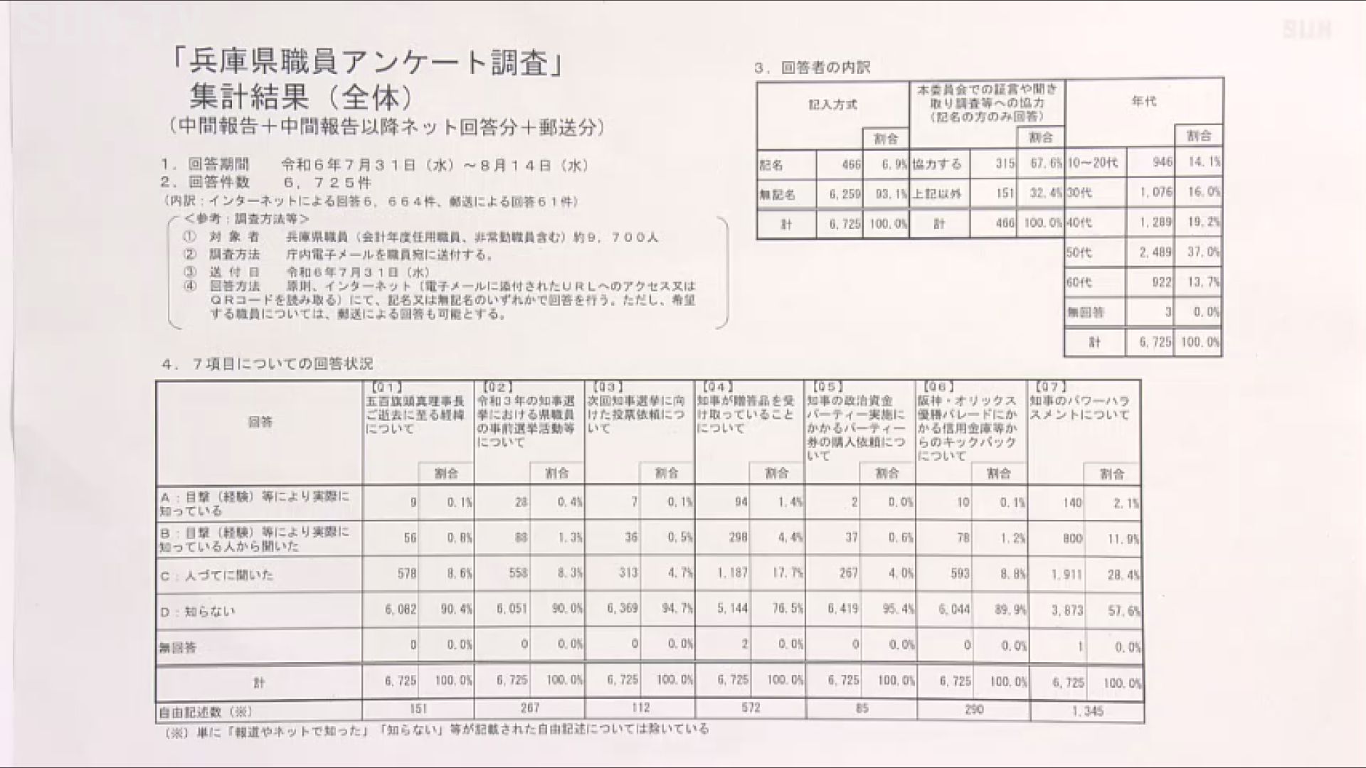 斎藤前知事のパワハラ疑惑などを調査する百条委員会が県職員を対象に実施したアンケートの最終報告書を公表しました。