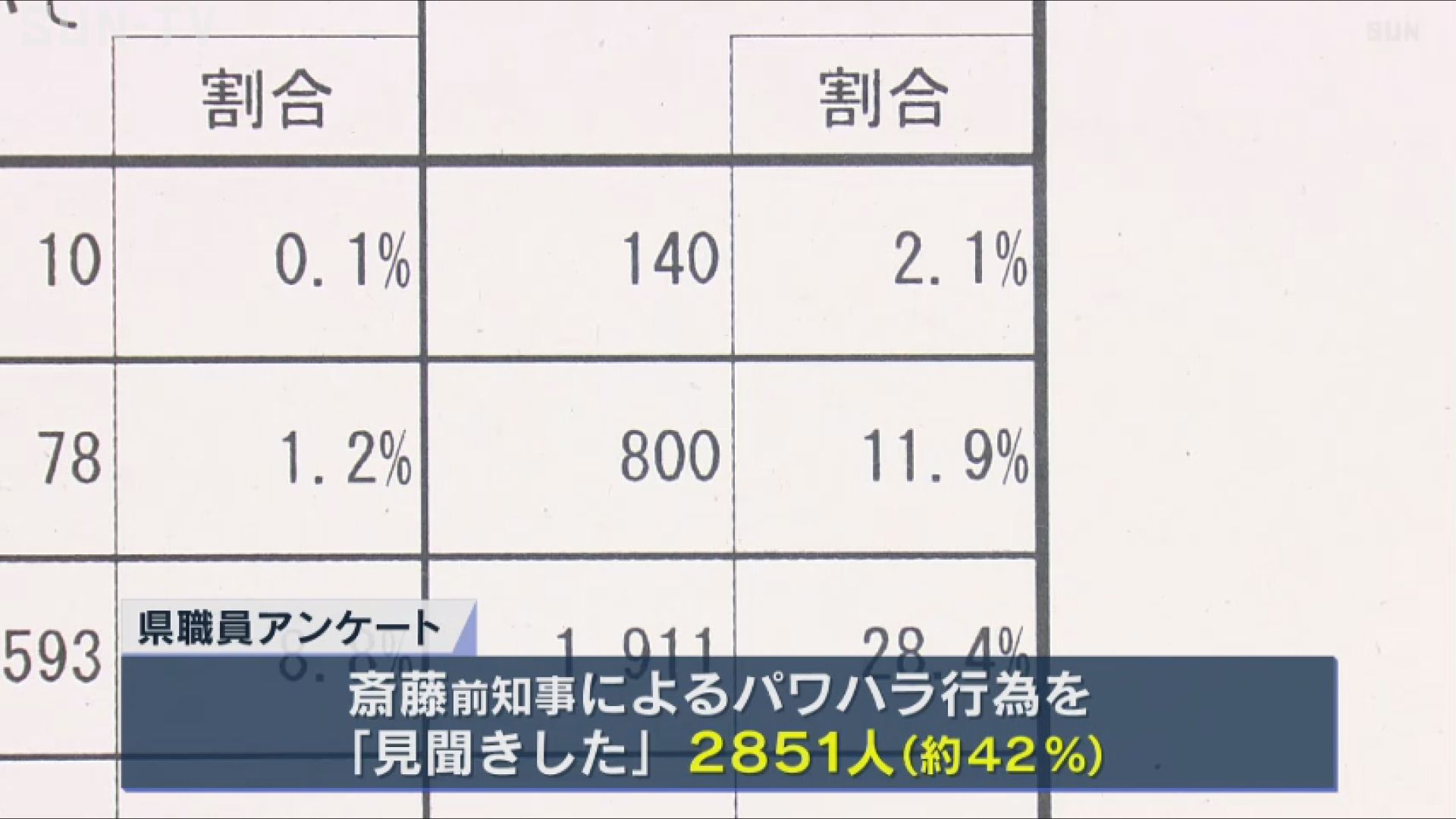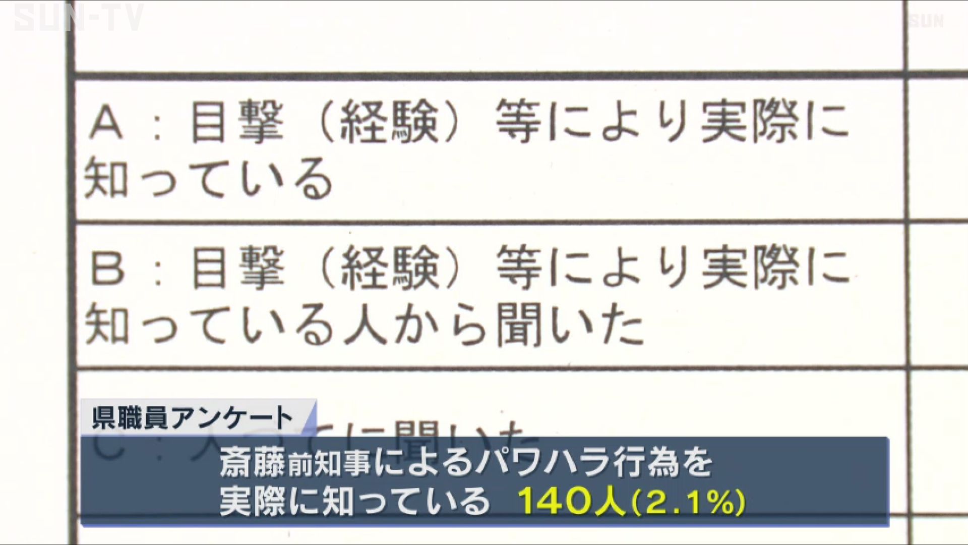 斎藤前知事によるパワハラ行為を実際に知っていると回答した職員は140人。