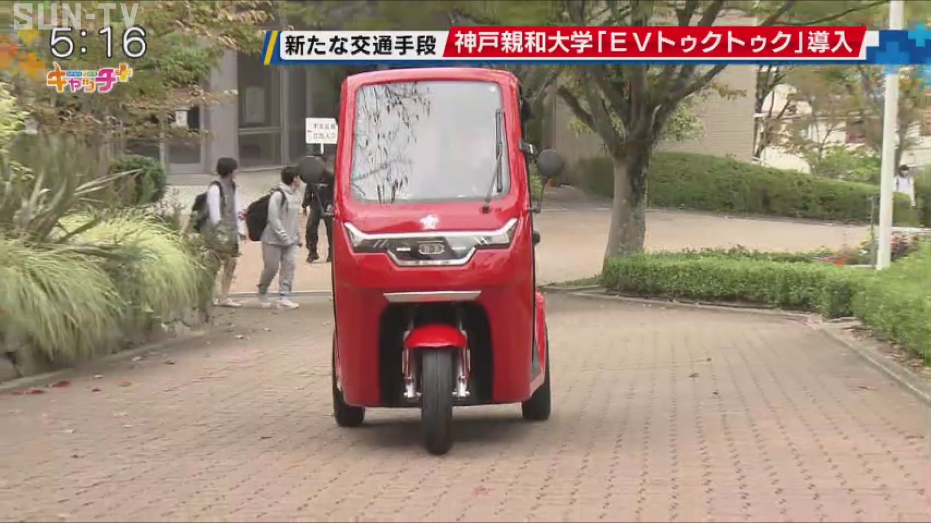 神戸市北区は道幅が狭い所や坂道が多い上、高齢化が進んでいて、神戸親和大学は交通課題の解決や地域の活性化を目指し、5台のトゥクトゥクを試験的に導入しました。