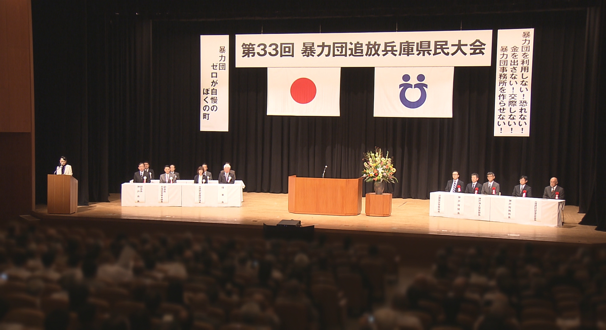 大会では始めに兵庫県警の村井紀之本部長が「暴力団追放の取り組みは市や町が連携し、一丸となって粘り強く継続していくことが重要」などとあいさつしました。