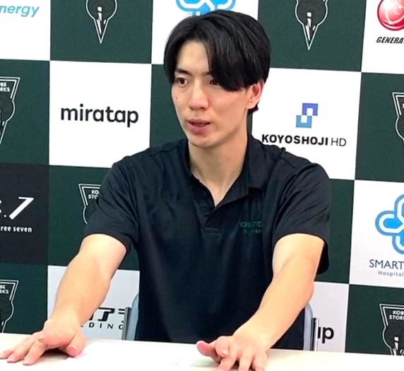 「Bプレミアに参入し、(来年4月に)自分たちのアリーナができて、神戸ストークスというチームがどんどん大きくなる第一歩と思い、すごく楽しみだ。何としても今シーズン、しっかりB1に昇格したい」と語った。