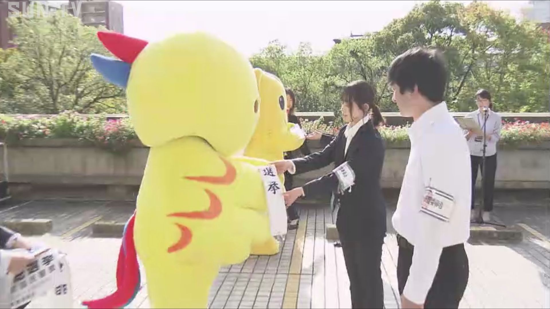 この後、啓発隊に投票をPRするパネルが手渡され、代表が「多くの人に衆議院選挙に対する関心を高めてもらえるよう呼び掛けたい」と決意表明しました。