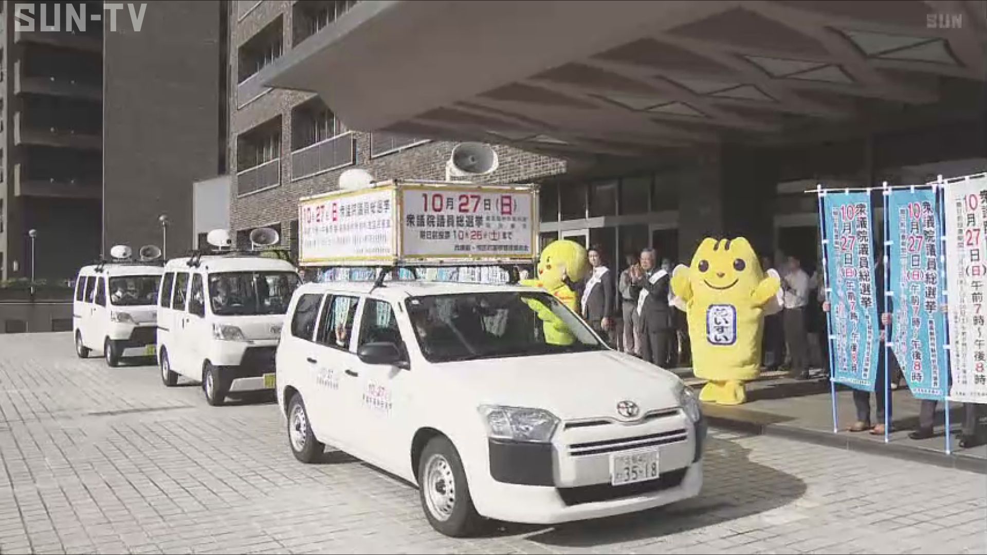 10月27日に投開票される衆議院選挙を前に有権者に投票を呼び掛ける「自動車啓発隊」の出発式が行われました。