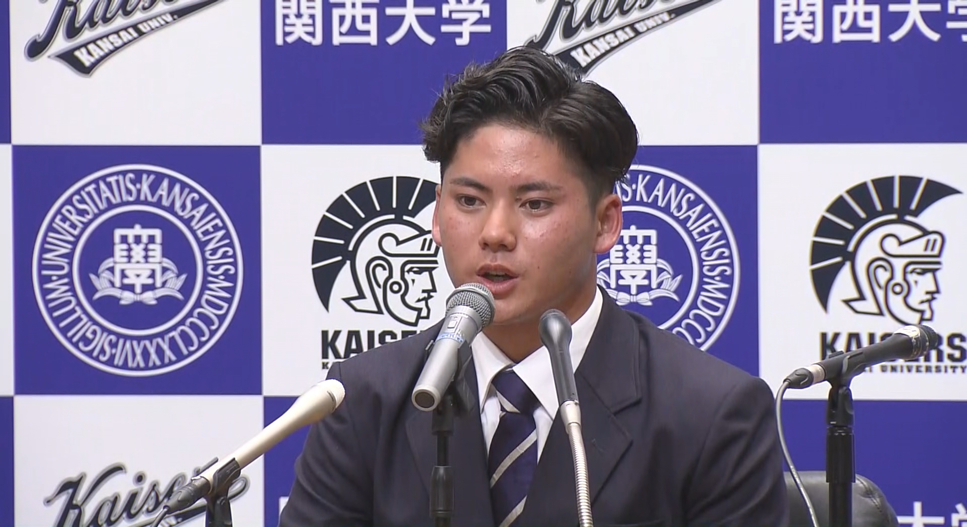 関西大学 金丸投手「侍ジャパンを経験したので その時チームメートだったセ リーグの方々を中心に対戦してみたい。自分の武器はストレートとコントロールなので、そういった武器をしっかりと出して勝負したい」