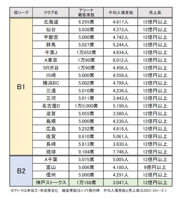 参入が決まった22クラブのうち、B1所属は18クラブ、B2所属は神戸ストークスなど4クラブ(うち富山と信州は昨シーズンB1)。