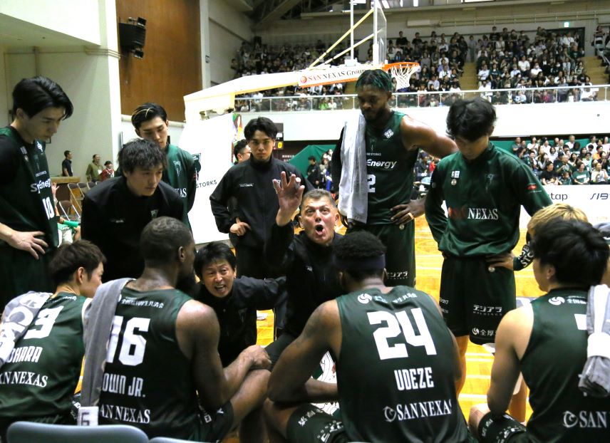 神戸ストークスは、右腓骨筋腱脱臼で手術(全治3カ月)を受けた谷直樹に加え、中西良太と藤原瞭我がベンチから外れたうえ、ベンチ入りした綱井勇介と川島聖那も出場せず、わずか8人での戦いに。