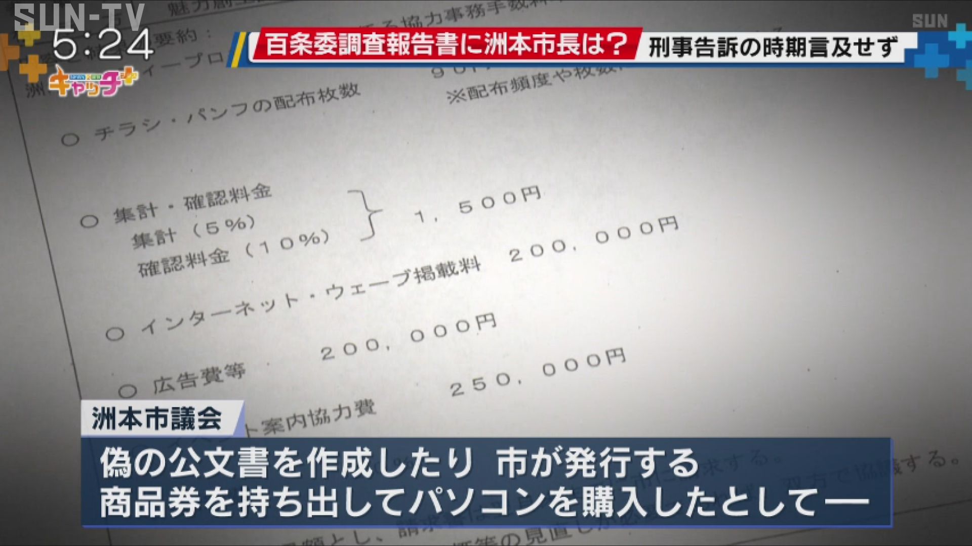また、市議会は、にせの公文書を作成したり市が発行する商品券を持ち出してパソコンを購入したとして、業務上横領などの疑いで担当部局の元課長らを刑事告訴することを市に求めています。