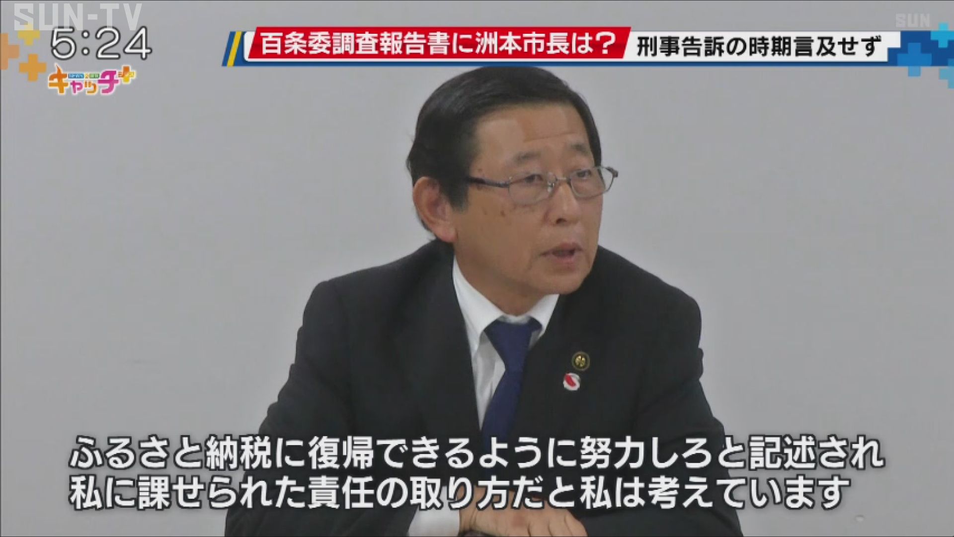 「行政の内部でうまく機能していなかった部分をしっかり機能させて正常な状態に戻す。ふるさと納税に復帰できるように努力しろと記述されている。私に課せられた責任の取り方だと私は考えています。今の質問でどういうお答えを期待しているのかぼんやり分かるんですけども、そちらの方は私は考えていませんので」