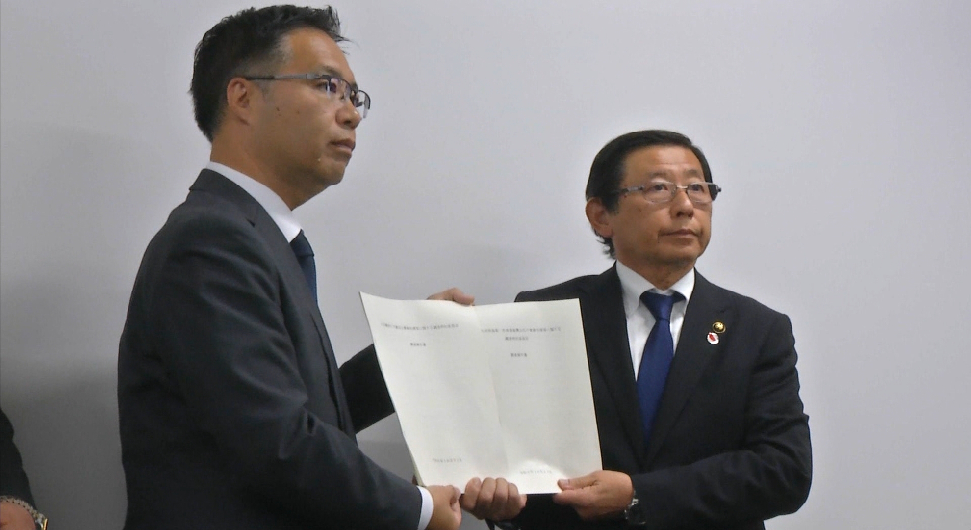 市議会は百条委員会を設置し、返礼品の温泉利用券やおせちを巡る不適正な事務処理の実態を調べ、きょう、調査報告書が市議会の福本巧議長から上崎勝規市長に手渡されました。