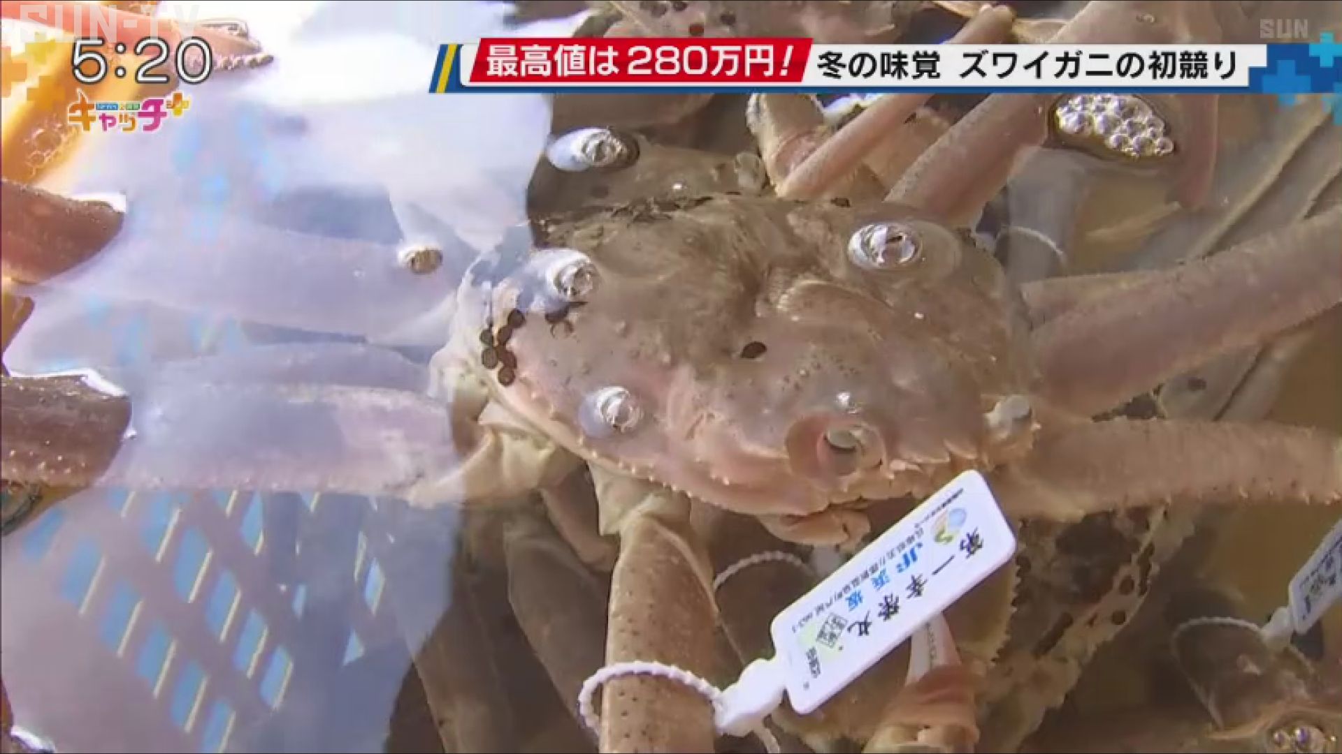 日本海の冬の味覚・「ズワイガニ」の漁が11月6日に解禁され、兵庫県但馬地域の各漁港で初競りが行われました。