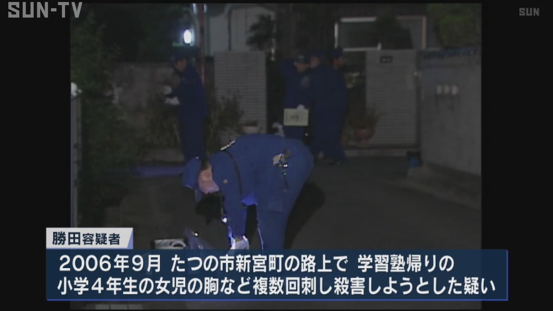 警察によりますと、男は2006年9月、兵庫県たつの市新宮町の路上で学習塾帰りの小学4年生の女児の胸などを複数回刺し殺害しようとした疑いが持たれています。
