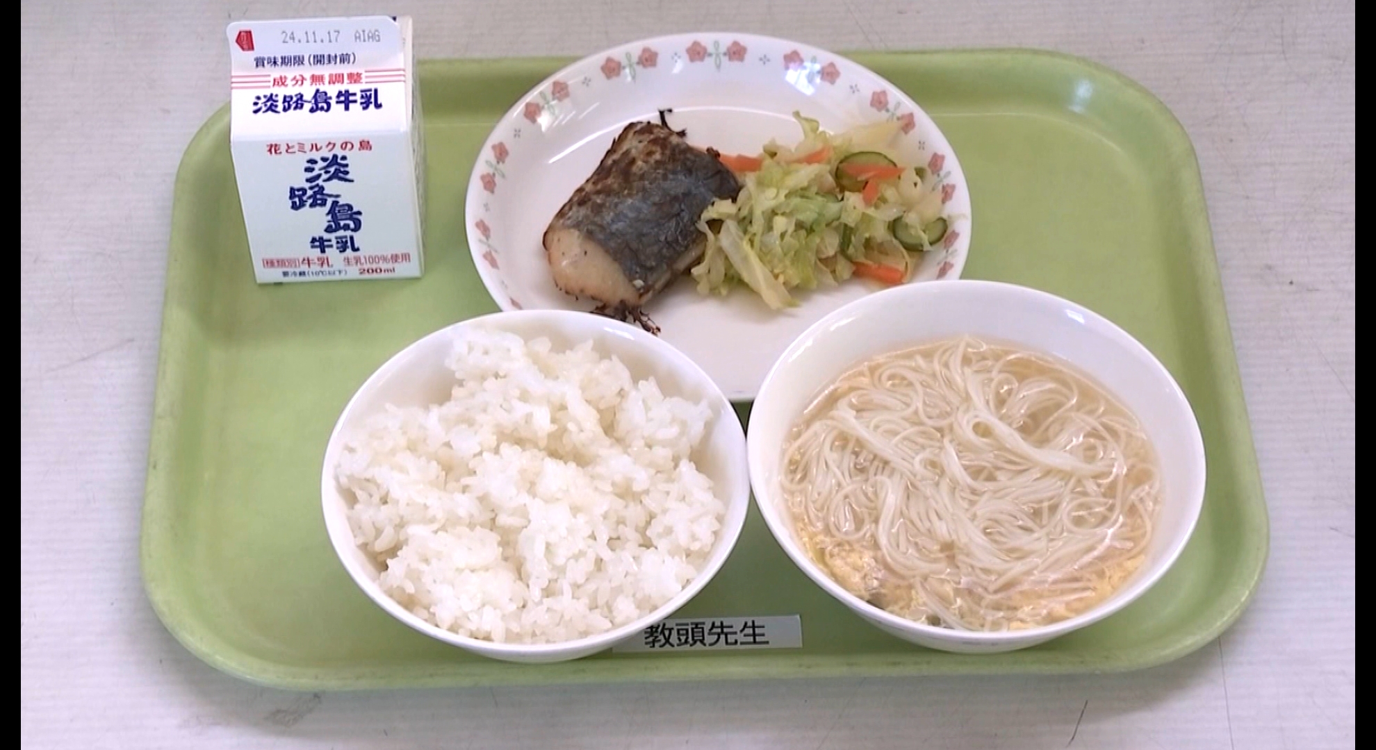 この日の献立は、淡路島産の手延べそうめんを使った「そうめん汁」