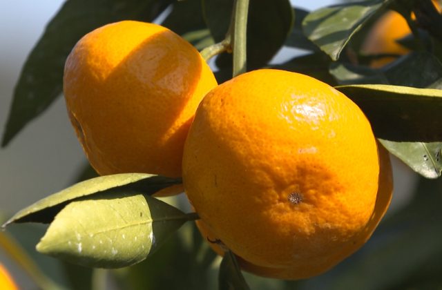 丸々と鮮やかな「オレンジ色」の実を付けたのは、ミカンの中では最も早い時期に食べ頃となる極わせ品種の「日南1号」です。