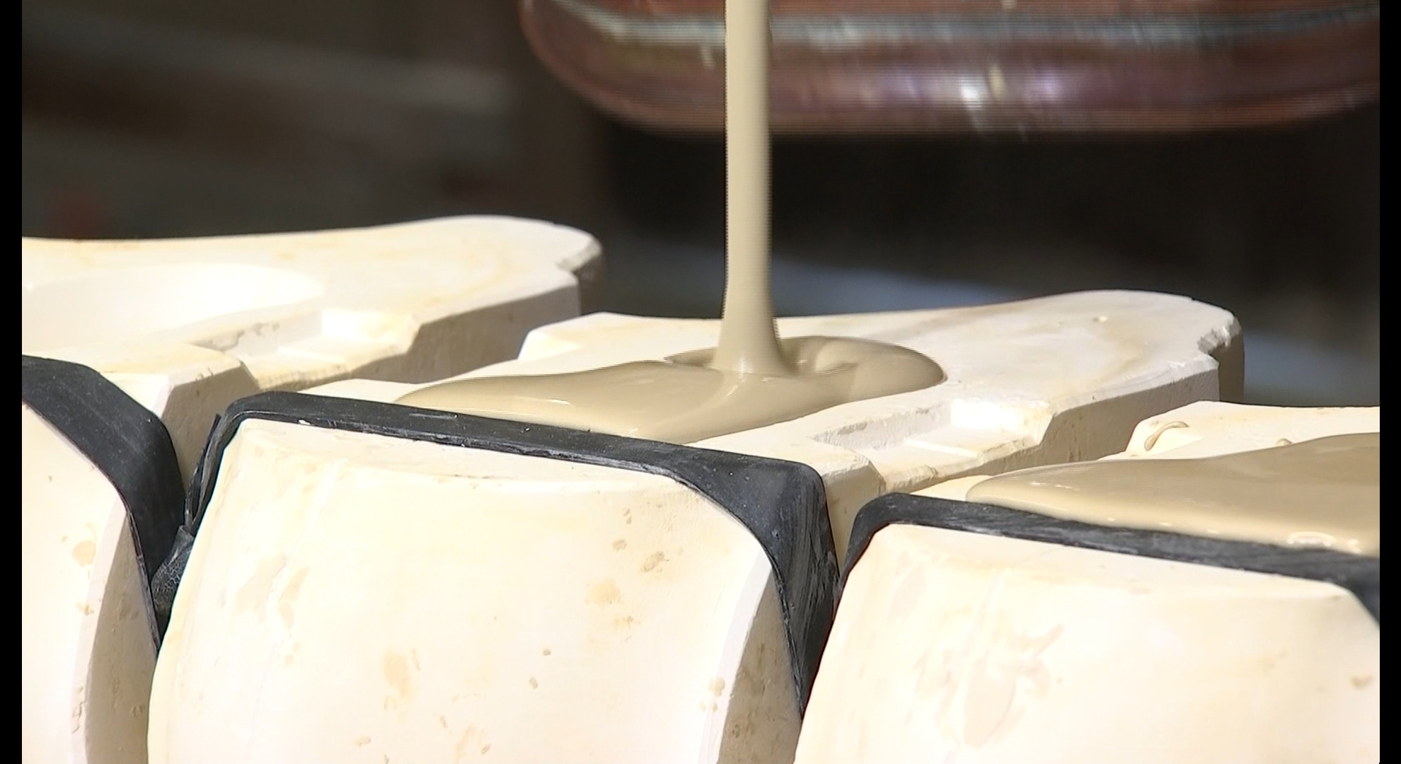 石膏で作った型枠に溶かした粘土を流し込み「ヘビ」をかたどった後、手作業で1つ1つ丁寧に形を整えたり目の穴を開けていきます。