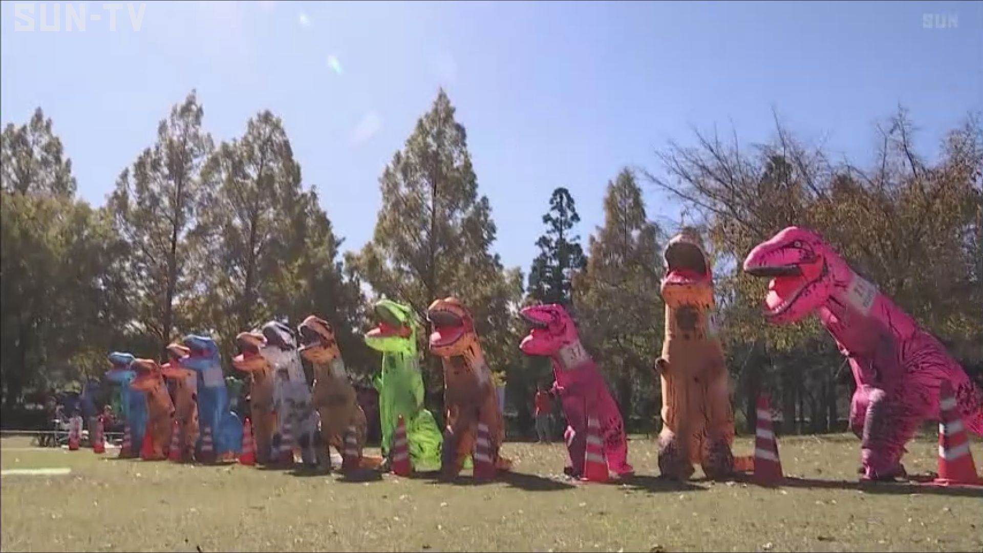 カラフルな恐竜の着ぐるみが激走! 丹波市で「ティラノサウルスレース」 2024.11.0919:40 地域・まち ティラノサウルスの着ぐるみを着て走るレースが「恐竜のまち」として知られる丹波市で開かれました。 兵庫県丹波市に集まったカラフルなティラノサウルスたち。 恐竜の着ぐるみを着て走る「ティラノサウルスレース」はアメリカ発祥と言われ、そのユニークな姿が話題を呼び全国各地で行われています。 丹波竜など多数の化石が見つかった丹波市では、町おこしとして地元の有志らの手で2023年から始まりました。 レースは、子どもから大人まで合わせておよそ160匹が参加。 #ティラノサウルスレース #丹波市 #恐竜 記事のギャラリーを見る ニュース一覧へ戻る