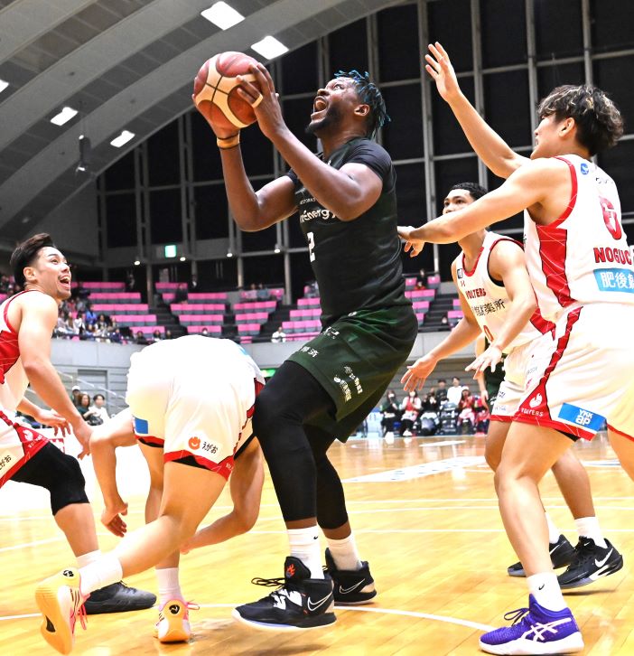 帰化選手のカロンジ磯山パトリック(コンゴ民主共和国出身)が9日の試合で、序盤からゴール下に突進して得点を重ね、計19得点。