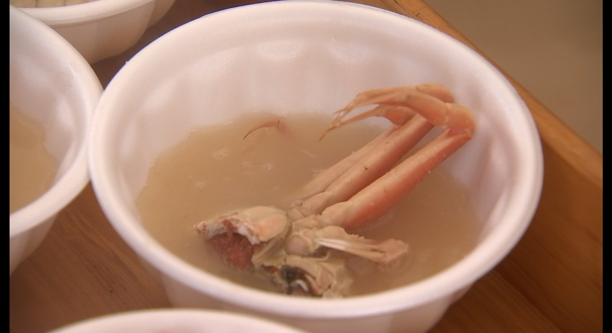 会場には、焼きガニやホタテなどを販売するブースも並んだ他、先着でかに汁や雑炊が無料で振る舞われました。
